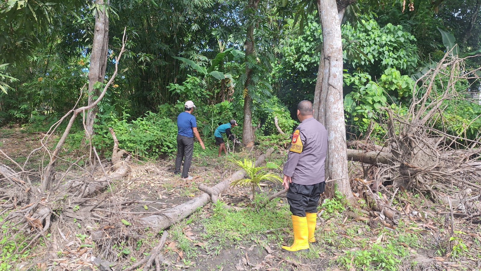 Dalam kegiatan tersebut Bhabinkamtibmas memantau langsung aktivitas penebangan beberapa pohon kayu menggunakan mesin senso yang dilakukan di lahan yang akan digunakan untuk penanaman jagung. Selain melakukan pemantauan, Bhabinkamtibmas juga menyampaikan pesan-pesan kamtibmas kepada warga, mengimbau agar kegiatan dilakukan sesuai aturan serta tetap menjaga kelestarian lingkungan.