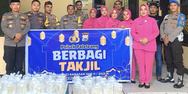 Perisaijurnalis.com, Pinrang – Dalam rangka menyemarakkan bulan suci Ramadhan, Polsek Persiapan Paleteang bersama Bhayangkari Ranting Paleteang menggelar kegiatan pembagian takjil kepada masyarakat pengguna jalan yang melintas.