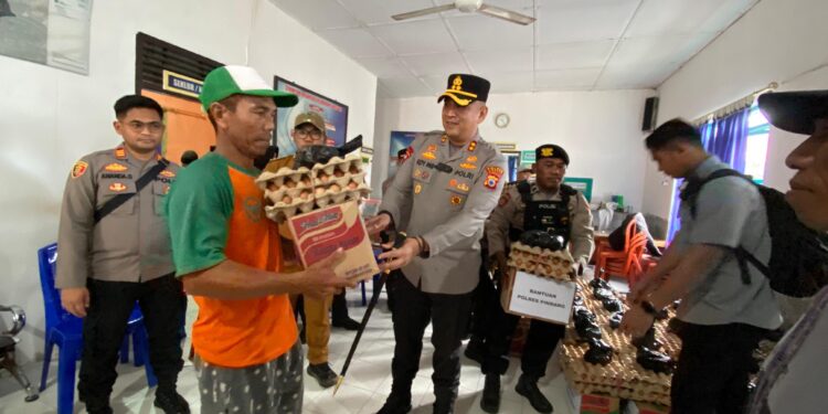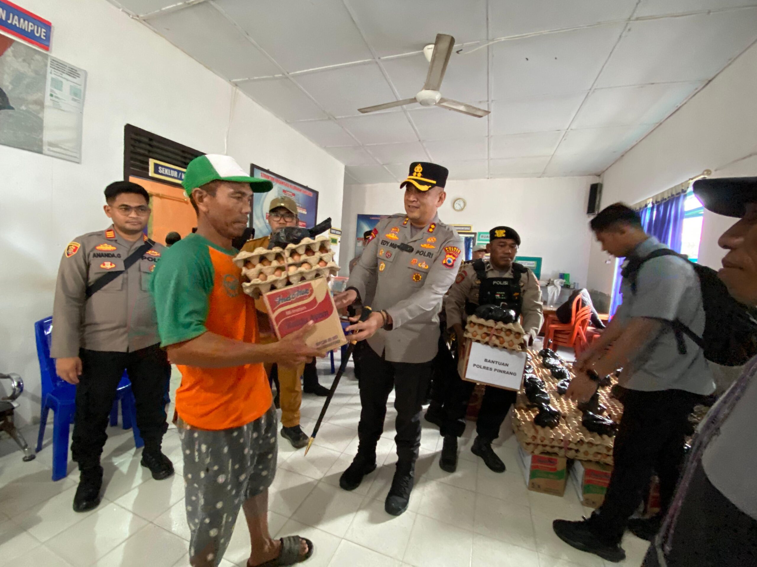 Sebagai wujud kepedulian, Kapolres Pinrang menyerahkan bantuan sembako secara simbolis berupa ikan sarden, telur, dan mi instan kepada warga. Usai penyerahan bantuan di Kantor Kelurahan Lanrisang, rombongan Kapolres melanjutkan peninjauan langsung ke rumah-rumah warga di Lingkungan Kassie yang terdampak bencana angin puting beliung. (MPJ)