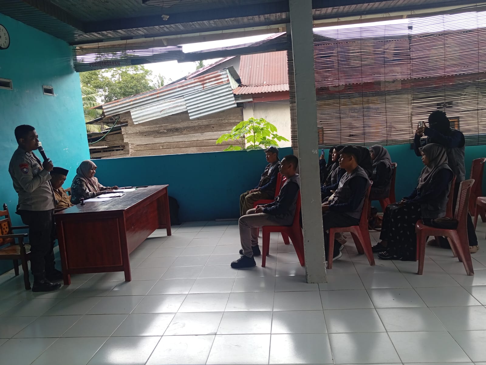 Bhabinkamtibmas Desa Amola Brigpol Muh. Syahrul Arifin menyampaikan apresiasi atas sinergi antara pihak kampus, pemerintah desa, dan masyarakat, serta menekankan pentingnya menjaga keamanan dan ketertiban selama para mahasiswa menjalankan kegiatan. (MPJ)