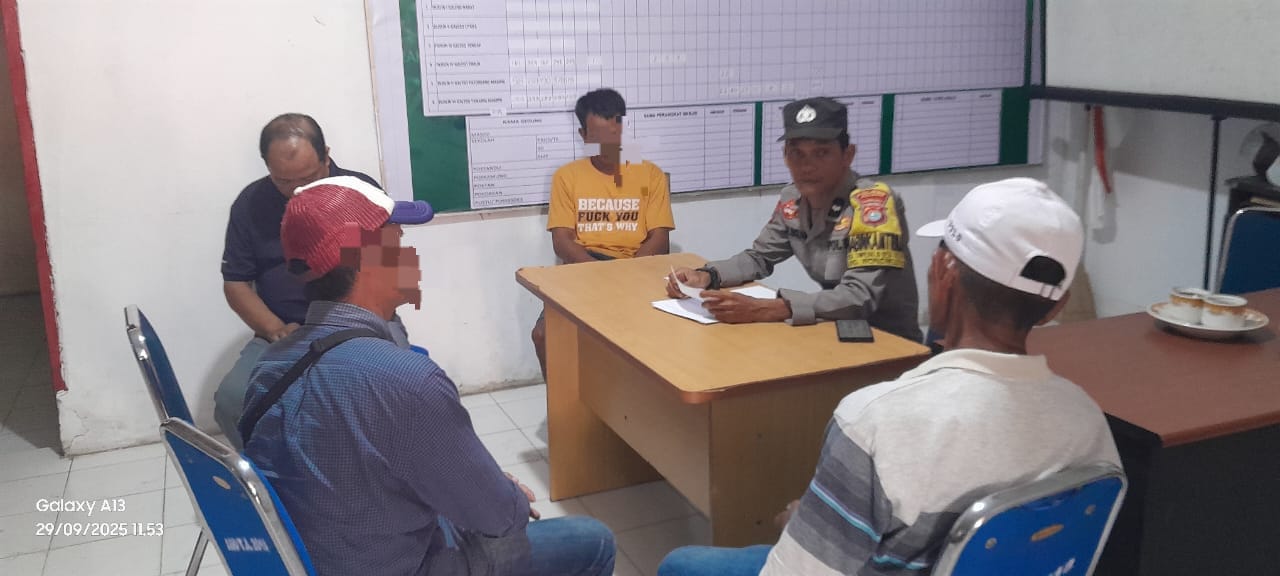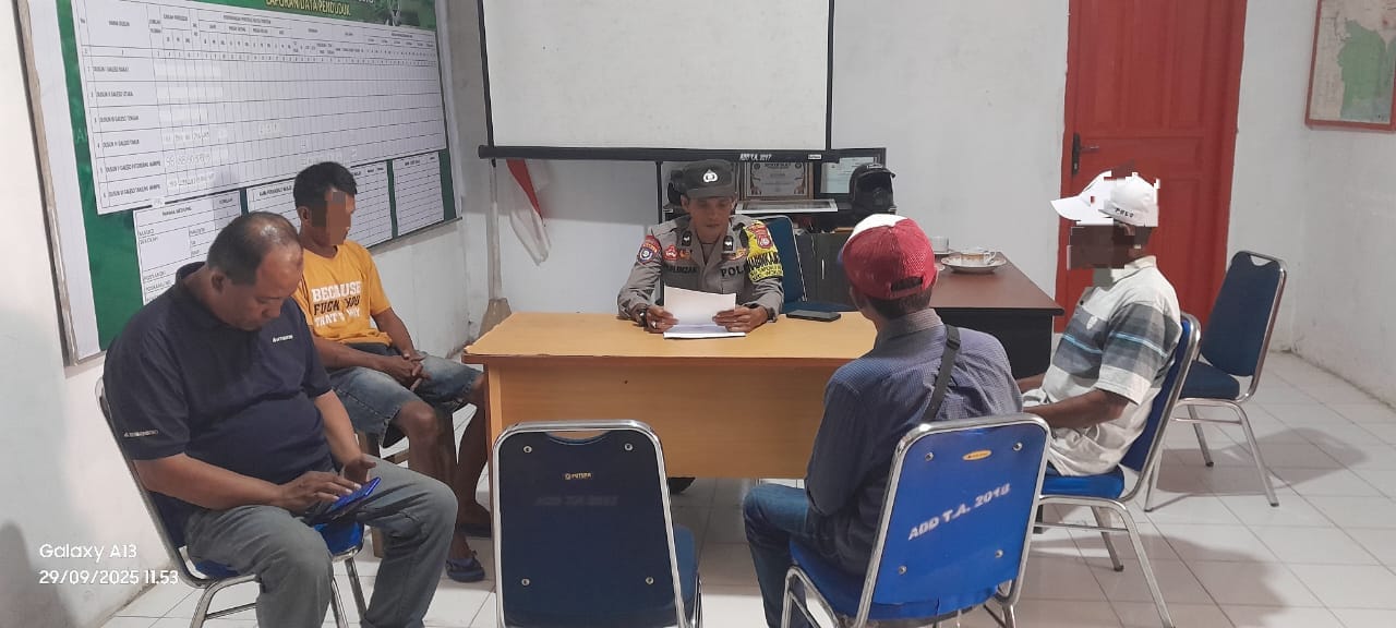 Perisaijurnalis.com, Polman – Upaya preventif kembali ditunjukkan oleh Bhabinkamtibmas Desa Galeso, Polsek Urban Wonomulyo Polres Polman, Aipda Muh. Imzak. Ia berhasil memediasi perselisihan antara dua warga Desa Galeso yang sempat memanas akibat permasalahan hutang piutang, di Kantor Desa Galeso Kecamatan Wonomulyo Kabupaten Polman Provinsi Sulawesi Barat. Senin (29/9/2025).