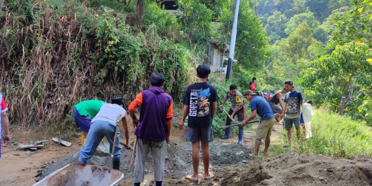 Bhabinkamtibmas Desa Mammi AIPDA J. Arianto, ED bersama warga dan Kelompok Tani Hutan (KTH) Mesakada dengan melakukan pengecoran jalan tani menuju area perkebunan masyarakat.