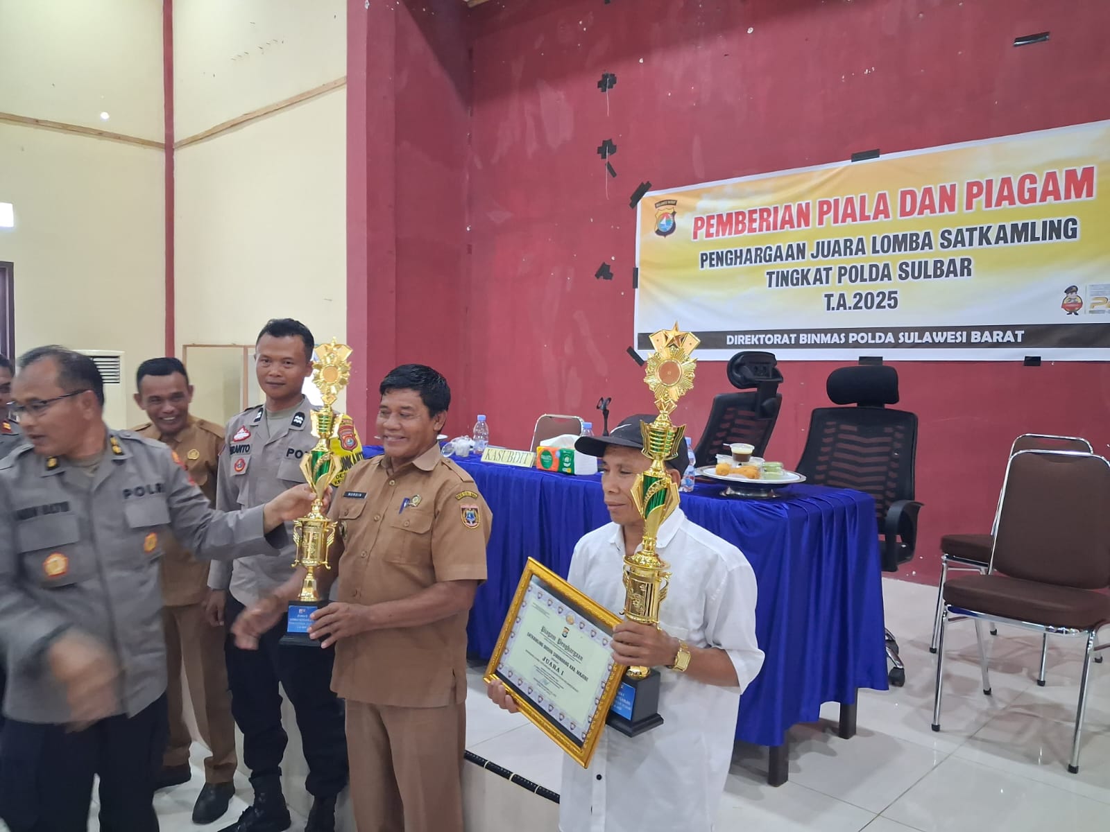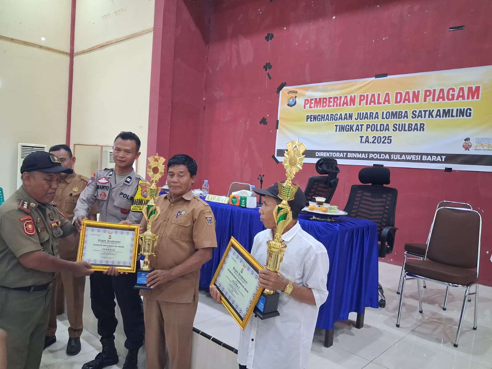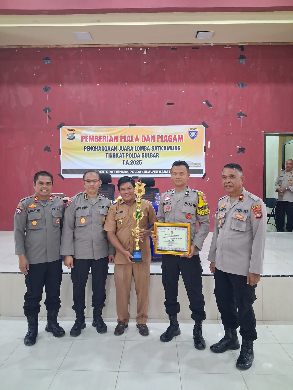 Perisaijurnalis.com, Polman – Bhabinkamtibmas Desa Sidorejo, Polsek Urban Wonomulyo, Polres Polman Aiptu Suranto mendampingi Kepala Desa Sidorejo dalam menerima penghargaan juara 2 lomba Satkamling tingkat Polda Sulbar Tahun 2025 bertempat di Aula Polres Majene Polda Sulbar. Selasa (30/10/2025).