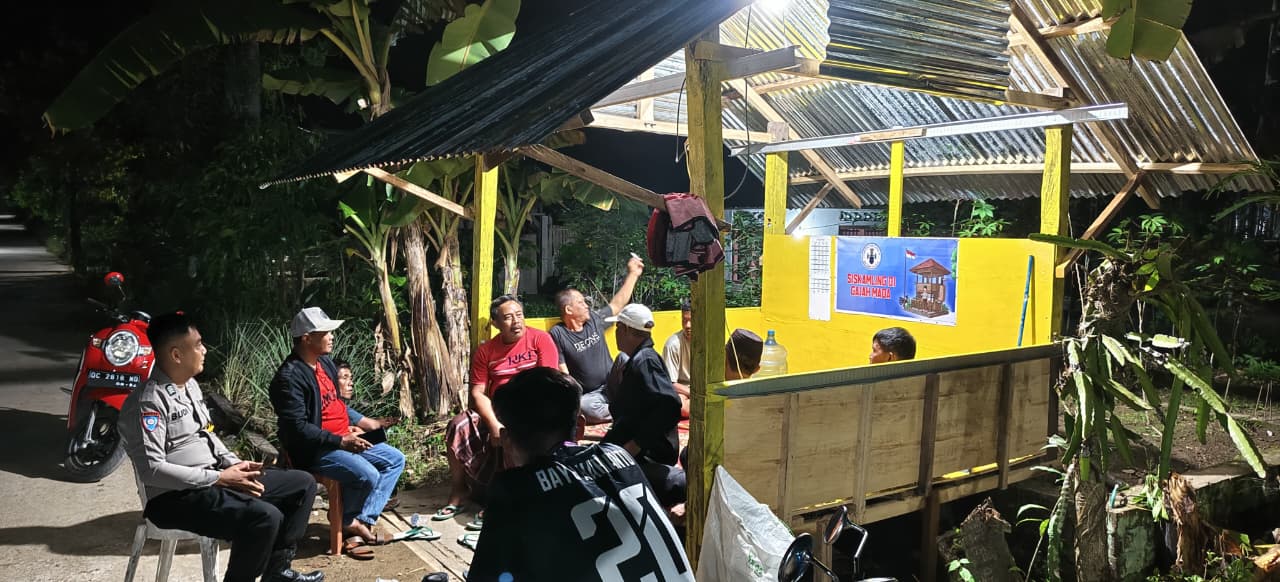 Dalam kesempatan itu, Bripka Budiono, S.H. menyampaikan pentingnya peran aktif masyarakat dalam menjaga keamanan lingkungan melalui keberadaan Satkamling sebagai bentuk sinergi antara warga dan kepolisian.