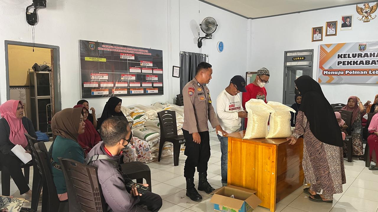 Bhabinkamtibmas Kelurahan Pekkabata Bripka Hasrat. M turut berkoordinasi dengan pihak kelurahan dan petugas penyalur untuk memastikan jumlah bantuan sesuai dengan data penerima.