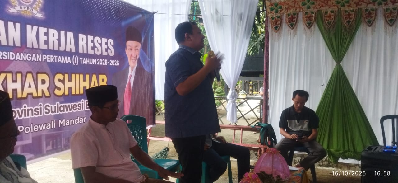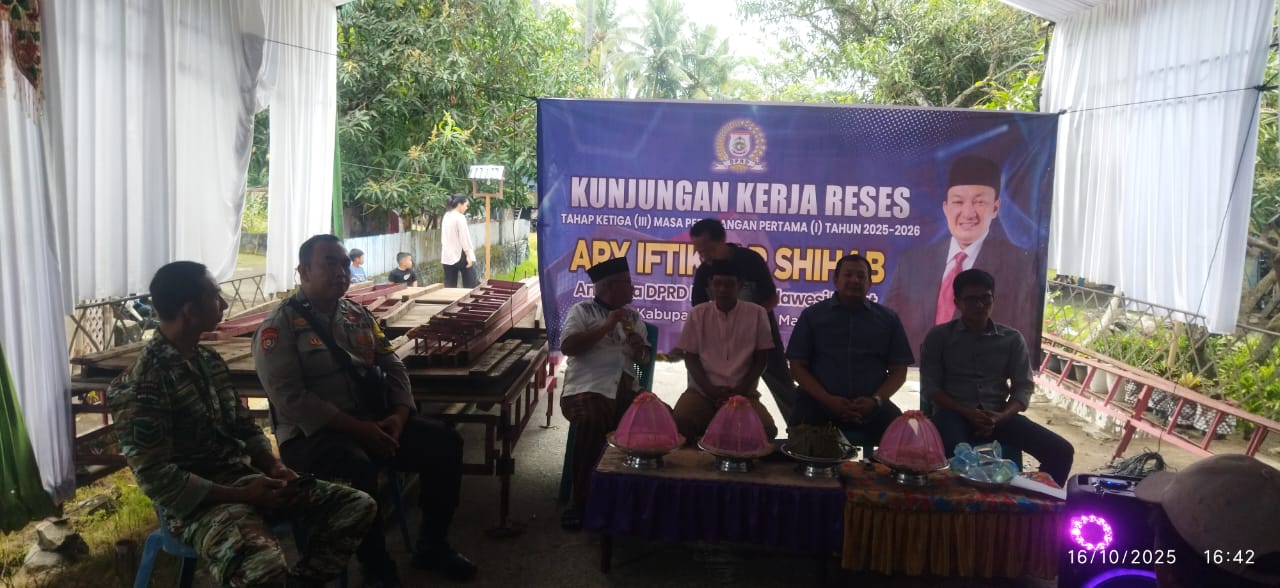Perisaijurnalis.com, Polman – Bhabinkamtibmas Desa Paku, Polsek Binuang, Polres Polman, Aipda Mansyur, menghadiri kegiatan kunjungan kerja reses tahap III masa persidangan pertama tahun 2025–2026 oleh anggota DPRD Provinsi Sulawesi Barat Komisi II yang membidangi pertanian, perikanan, dan kelautan, Ary Iftikhar Shihab, bertempat di Dusun Tetah, Desa Paku, Kecamatan Binuang, Kabupaten Polewali Mandar, Provinsi Sulawesi Barat, pada Kamis (16/10/2025) sekitar pukul 16.30 Wita.