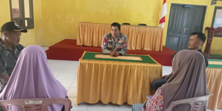 Perisaijurnalis.com, Polman – Bhabinkamtibmas Polsek Matangnga, Polres Polewali Mandar (Polman) Aipda Muzakkir bersama Ka Lingkungan Matangnga Suriani dan Kadus Sepang Cina Sadli, berhasil menyelesaikan masalah pemukulan yang terjadi di lapangan Volly SMP 3 Sumarorong antara dua warga, Saribulan (38) alamat Desa Katimbang dan Hanapiah (42) alamat Desa Sepang, dengan pendekatan problem solving di Kantor Kecamatan Matangnga Kabupaten Polman Provinsi Sulbar. Senin (24/02/2025).