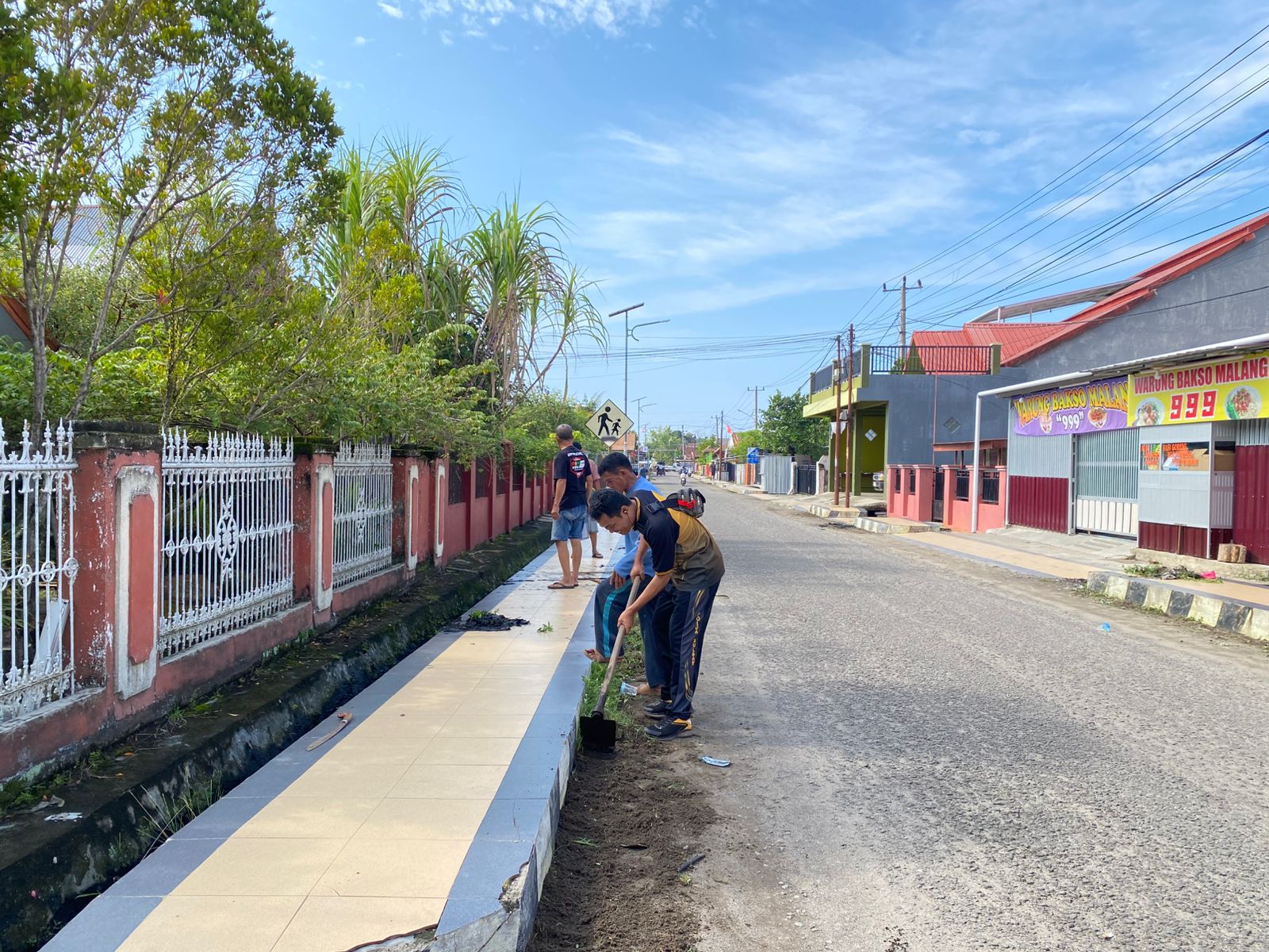 Kegiatan yang dimulai sekitar pukul 08.10 hingga 10.30 Wita tersebut diisi dengan gotong royong membersihkan saluran drainase serta memotong rumput liar di sepanjang jalan lingkungan.