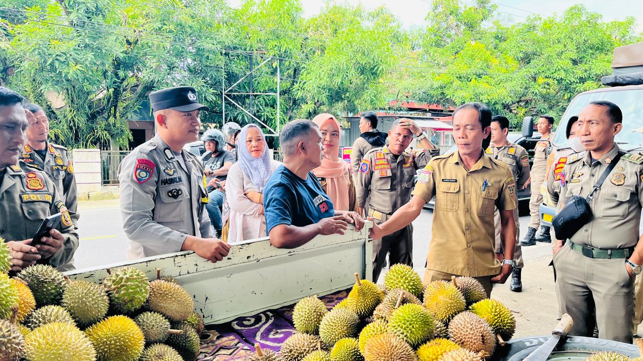 Dalam sosialisasi tersebut, petugas memberikan imbauan kepada para pedagang, khususnya penjual durian musiman, agar tidak lagi berjualan di atas trotoar. Disampaikan bahwa trotoar berfungsi sebagai fasilitas untuk pejalan kaki, bukan untuk berjualan.