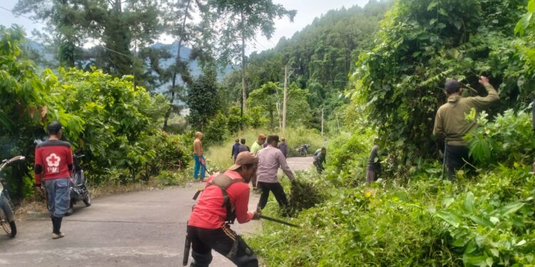 Perisaijurnalis.com, Polman – Bhabinkamtibmas Desa Batu, AIPDA Johari Manihuruk, bersama warga desa melaksanakan kegiatan gotong royong membersihkan tumbuhan liar yang tumbuh di bahu jalan poros Desa Batu, Kecamatan Tapango, Kabupaten Polewali Mandar (Polman), Provinsi Sulawesi Barat, Sabtu (14/02/2026).