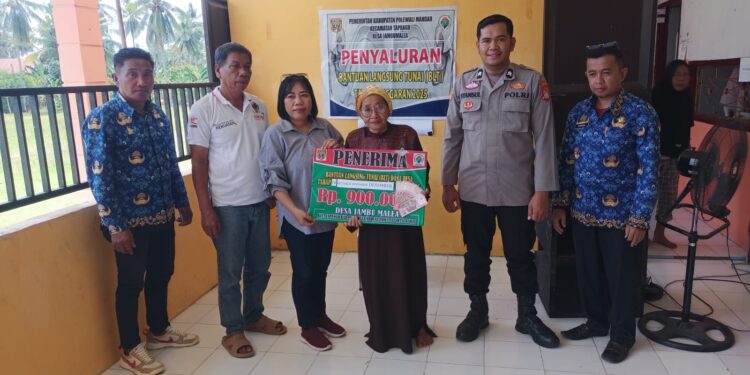 Perisaijurnalis.com, Polman – Bhabinkamtibmas Desa Jambu Malea, Polsek Tapango, Briptu Syamsul Rijal menghadiri kegiatan penyaluran Bantuan Langsung Tunai Dana Desa (BLT DD) Triwulan IV Tahun Anggaran 2025 yang dilaksanakan di Aula Kantor Desa Jambu Malea, Kecamatan Tapango, Kabupaten Polewali Mandar, Provinsi Sulawesi Barat, Rabu (17/12/2025) pagi.