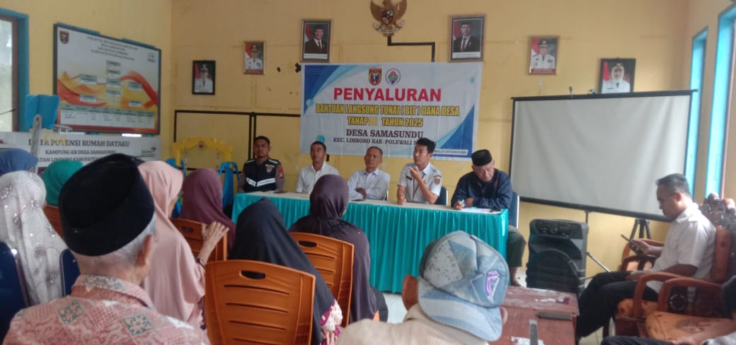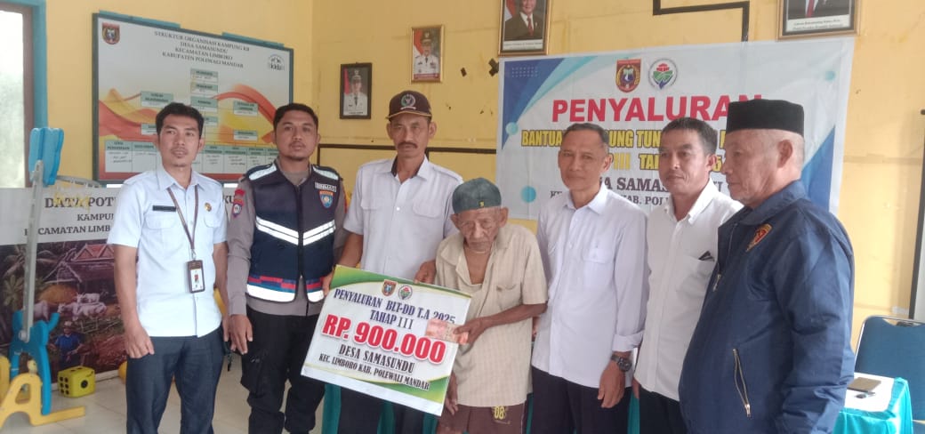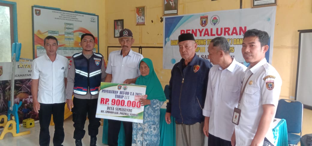 Perisaijurnalis.com, Polman – Bhabinkamtibmas Desa Samasundu, Polsek Tinambung Polres Polman, Brigpol Muhlis Farid menghadiri kegiatan penyaluran Bantuan Langsung Tunai (BLT) Dana Desa tahap III tahun anggaran 2025 yang berlangsung di Aula Kantor Desa Samasundu, Kecamatan Limboro, Kabupaten Polewali Mandar, Provinsi Sulawesi Barat. Rabu (22/10/2025).