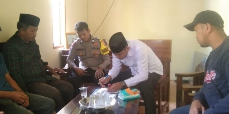 Proses mediasi disaksikan oleh orang tua kedua belah pihak, tokoh masyarakat serta perangkat desa.