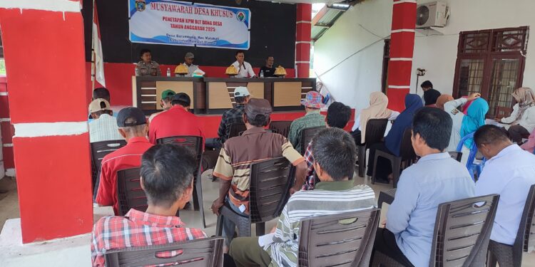 Perisaijurnalis.com, Polman – Bhabinkamtibmas Desa Barumbung Brigpol Irfan Taufik, menghadiri musyawarah desa khusus yang diselenggarakan di Aula Kantor Desa Barumbung Kecamatan Matakali Kabupaten Polman Provinsi Sulbar. Rabu (12/02/2025).