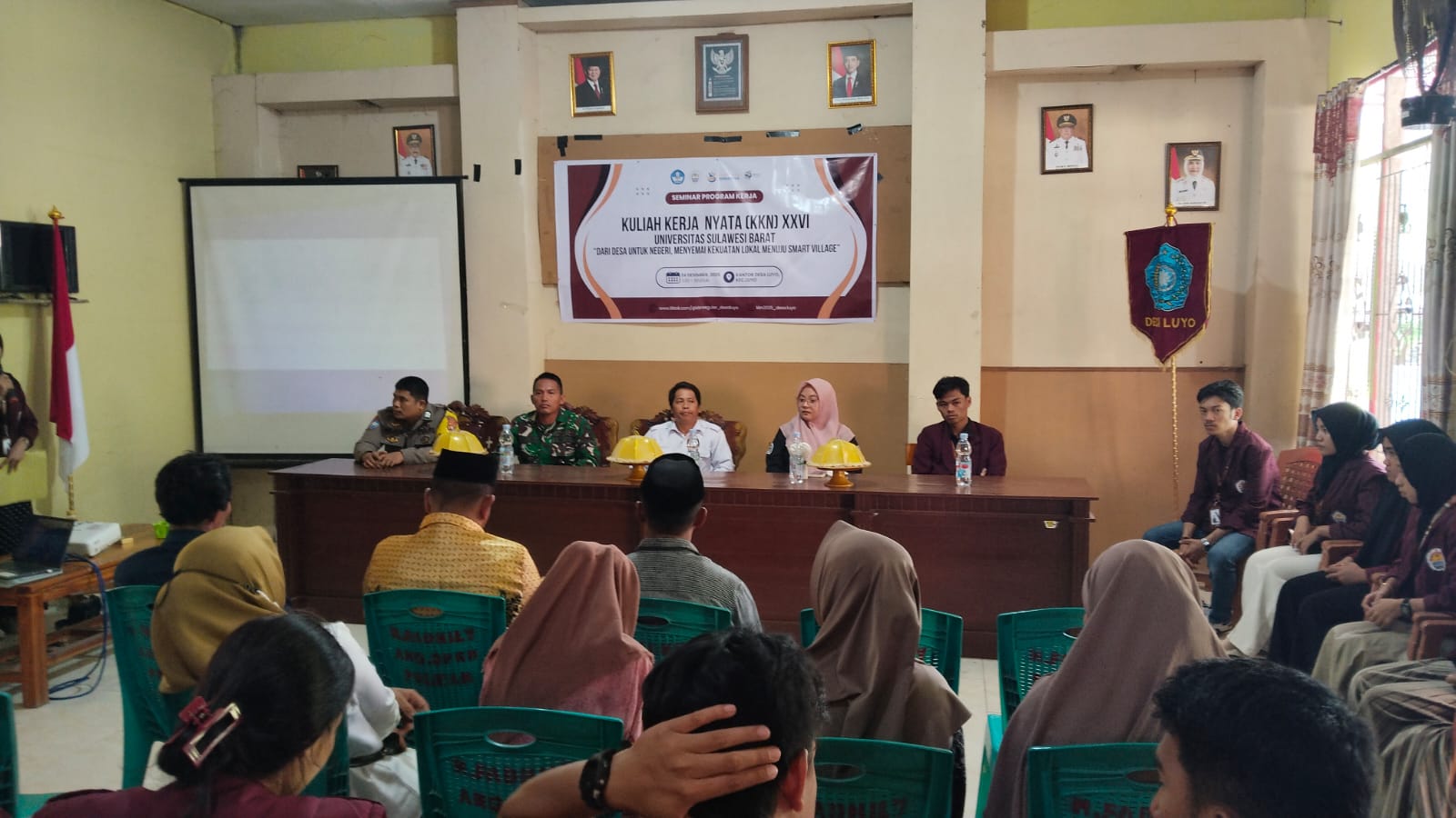 “Dari Desa Untuk Negeri, Menyemai Kekuatan Lokal Menuju Smart Village,” dengan tujuan memaparkan rencana program kerja mahasiswa KKN Unsulbar yang akan dilaksanakan di Desa Luyo.