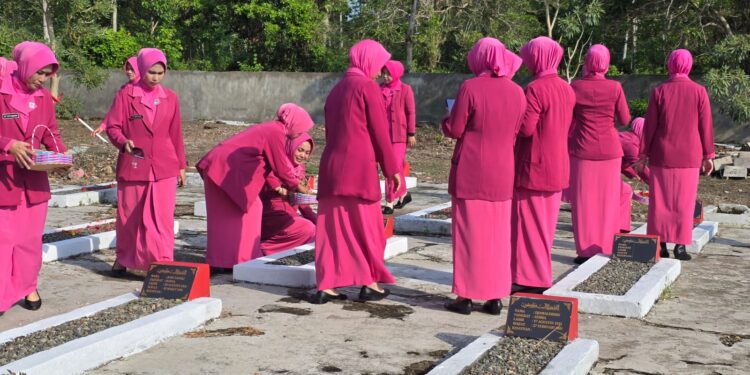 Perisaijurnalis.com, Polman – Dalam rangka menyambut Hari Kesatuan Gerak Bhayangkari (HKGB) ke-73 Tahun 2025, Bhayangkari Cabang Polman melaksanakan kegiatan ziarah dan tabur bunga di Taman Makam Pahlawan (TMP) Desa Rea, Kecamatan Binuang, Kabupaten Polewali Mandar, Provinsi Sulawesi Barat, Jumat (17/10/2025) pagi. Kegiatan terebut dipimpin langsung oleh Ketua Bhayangkari Cabang Polman, Ny. Devi Anjar, didampingi Wakil Ketua Bhayangkari Cabang, Ny. Novrika Indra, serta diikuti oleh para pengurus Bhayangkari Cabang dan Ketua Bhayangkari ranting jajaran Polres Polman.