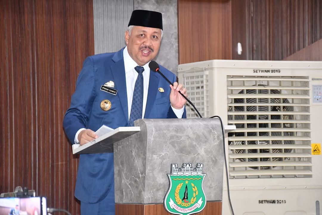 Lanjut Irwan Hamid, capaian kinerja melalui pelaksanaan tugas dan fungsi pemerintah daerah didukung oleh seluruh perangkat daerah yang mengacu pada indikator kinerja makro. Pencapaian indikator kinerja makro tahun 2024 Kabupaten Pinrang dapat diuraikan sebagai berikut: (1) Indeks Pembangunan Manusia (IPM) Kabupaten Pinrang pada tahun 2024 mencapai 75,43 meningkat 0,73 poin bila dibandingkan dengan tahun 2023 yakni sebesar 74,70. Peningkatan IPM 2024 didukung oleh peningkatan pada semua komponen penyusunnya; (2) PDRB Perkapita Kabupaten Pinrang tahun 2024 sebesar 62,77 juta rupiah, bila dibandingkan tahun 2023 mencapai 59,97 juta rupiah, atau mengalami peningkatan sebesar 2,8 juta rupiah; (3) Persentase penduduk miskin periode Maret 2024 sebesar 8,55 % menurun sebesar 0,35 poin dibanding periode Maret 2023 sebesar 8,90 %; (4) Pertumbuhan ekonomi pada tahun 2024 sebesar 5,17 % mengalami peningkatan 2,99 poin dibanding pertumbuhan ekonomi tahun 2023 sebesar 2,18%.