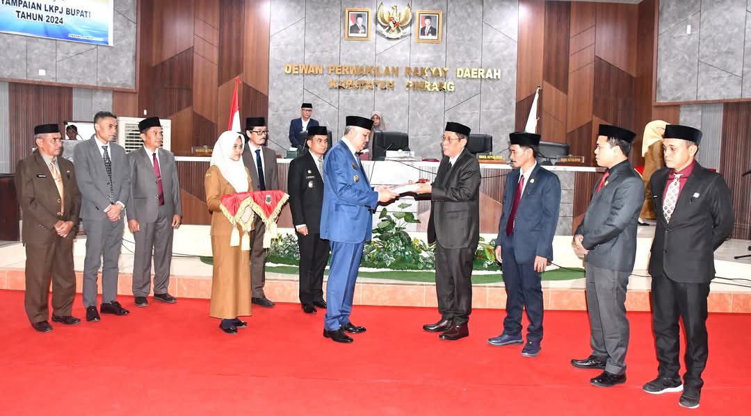 Dalam kata pengantarnya, Ketua DPRD Pinrang, H. Nasrun Paturusi menjelaskan, berdasarkan ketentuan Undang-Undang Nomor 23 Tahun 2014 tentang Pemerintahan Daerah sebagaimana telah diubah beberapa kali, terakhir dengan Undang-Undang Nomor 1 Tahun 2022 tentang hubungan Keuangan antara Pemerintah Pusat dan Pemerintah Daerah Pasal 69 ayat (1) dinyatakan bahwa ”Kepala Daerah wajib menyampaikan Laporan Penyelenggaraan Pemerintahan Daerah, Laporan Keterangan Pertanggungjawaban, dan Ringkasan Laporan Penyelenggaraan Pemerintahan Daerah,” dan Pasal 71 ayat (2) menyatakan, “Kepala Daerah menyampaikan Laporan Keterangan Pertanggungjawaban kepada DPRD yang dilakukan 1 kali dalam 1 tahun paling lambat 3 (tiga) bulan setelah tahun anggaran berakhir.”.