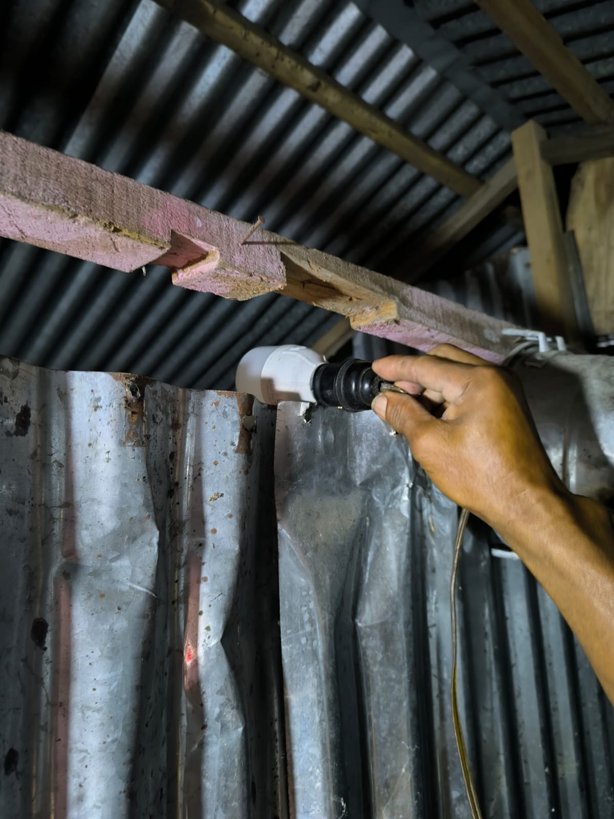 Tak lama kemudian, Suparman (53), menantu korban, datang ke lokasi setelah mendengar teriakan minta tolong. Ia segera memeriksa sumber listrik di kamar mandi dan menemukan bola lampu tersangkut di bagian atas dinding seng. Setelah mencabut colokan lampu tersebut, Suparman bersama warga mengevakuasi korban ke atas rumah.