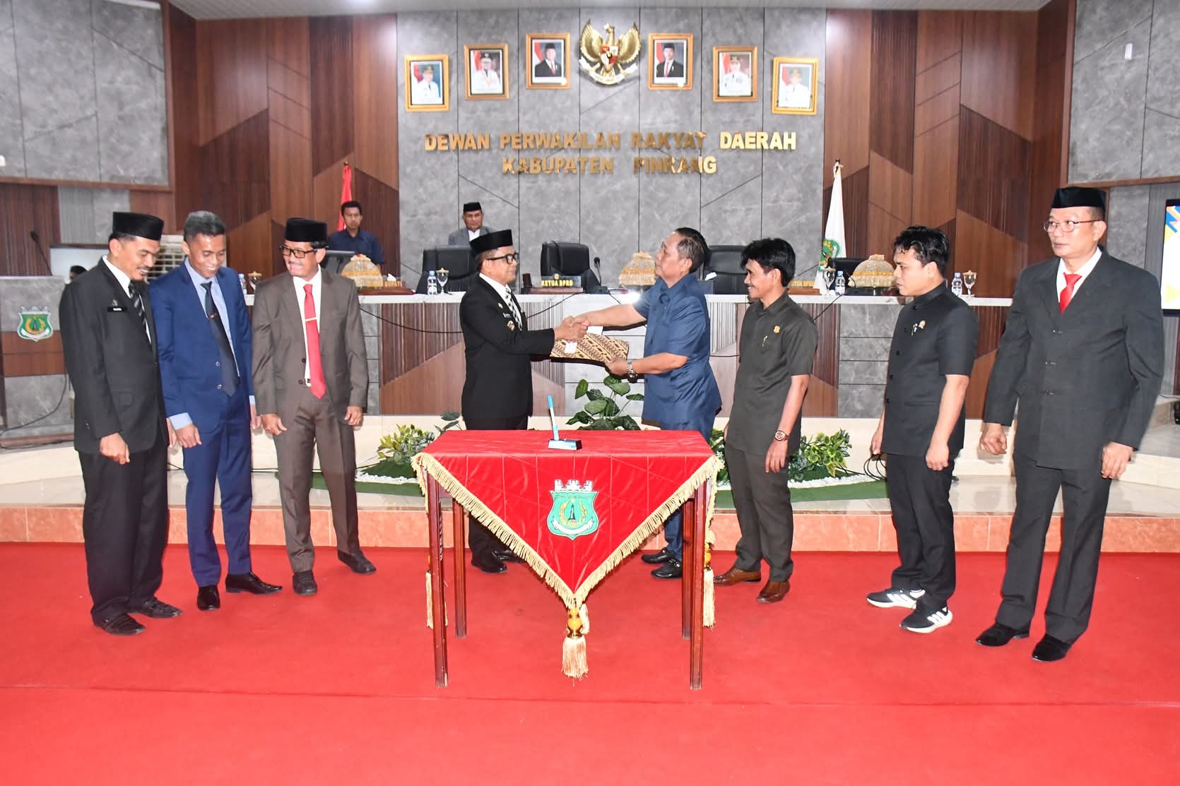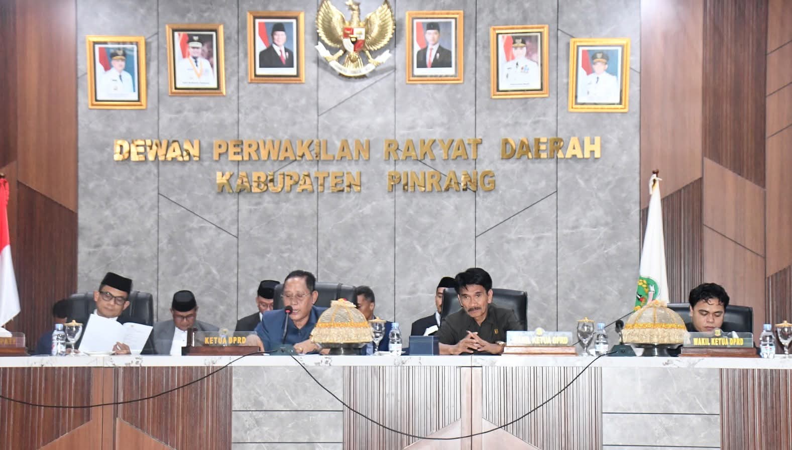 Perisaijurnalis.com, Pinrang – DPRD Kabupaten Pinrang, Sulawesi Selatan menggelar rapat paripurna dengan agenda penandatanganan keputusan bersama antara DPRD dan Kepala Daerah tentang persetujuan bersama terhadap pengajuan Ranperda di luar Propemperda Kabupaten Pinrang Tahun 2025 dan penerimaan secara resmi dan pandangan umum fraksi-fraksi terhadap Ranperda tentang perubahan atas Perda Kabupaten Pinrang Nomor 1 Tahun 2024 tentang pajak daerah dan retribusi daerah. Selasa, (25/11/2025), pukul 14.00 Wita bertempat di ruang rapat paripurna.