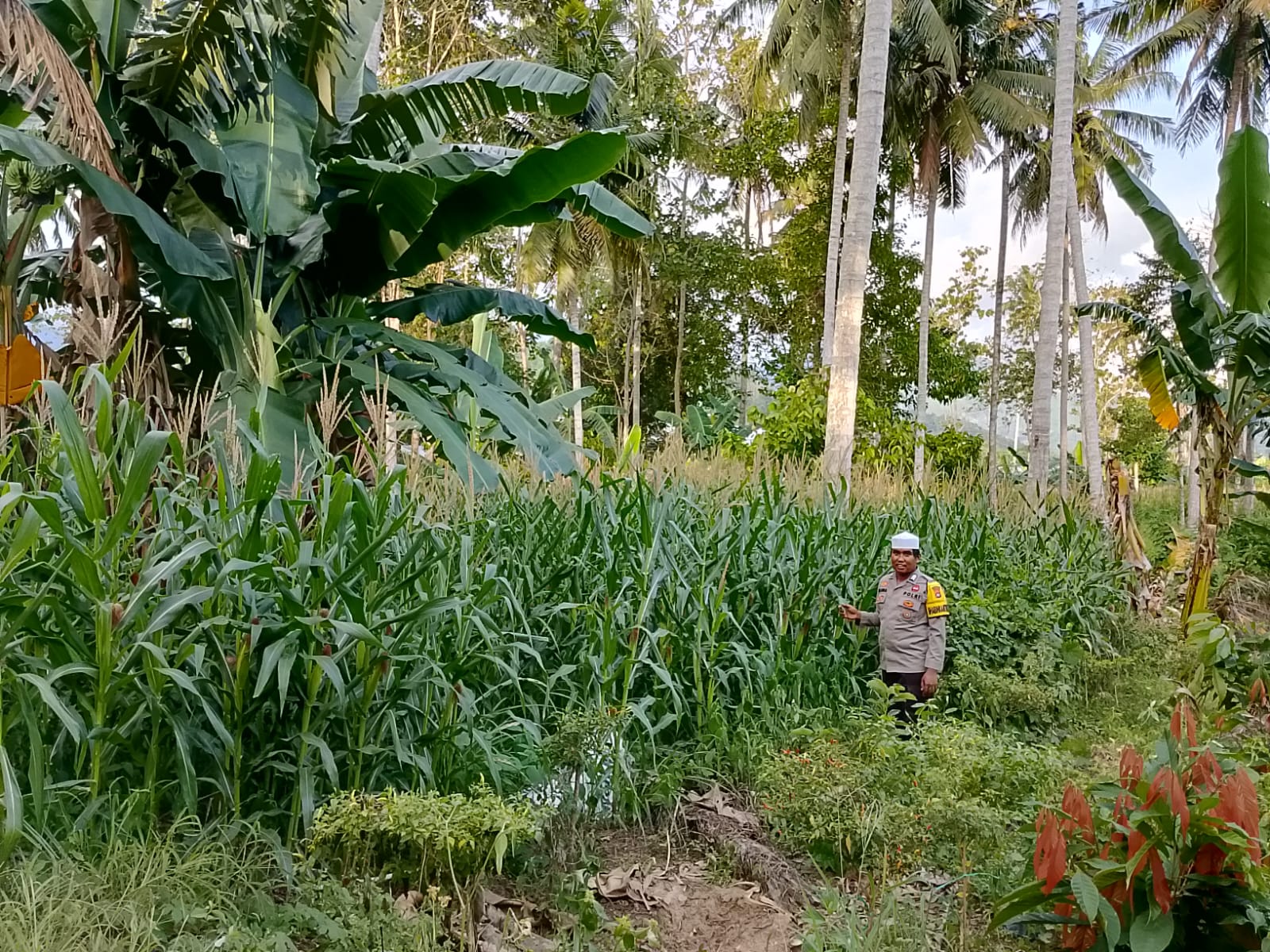 Dalam kesempatan tersebut, Brigpol Masrul juga berdialog langsung dengan pemilik lahan sekaligus memberikan motivasi agar tetap semangat dalam mengelola pertanian.