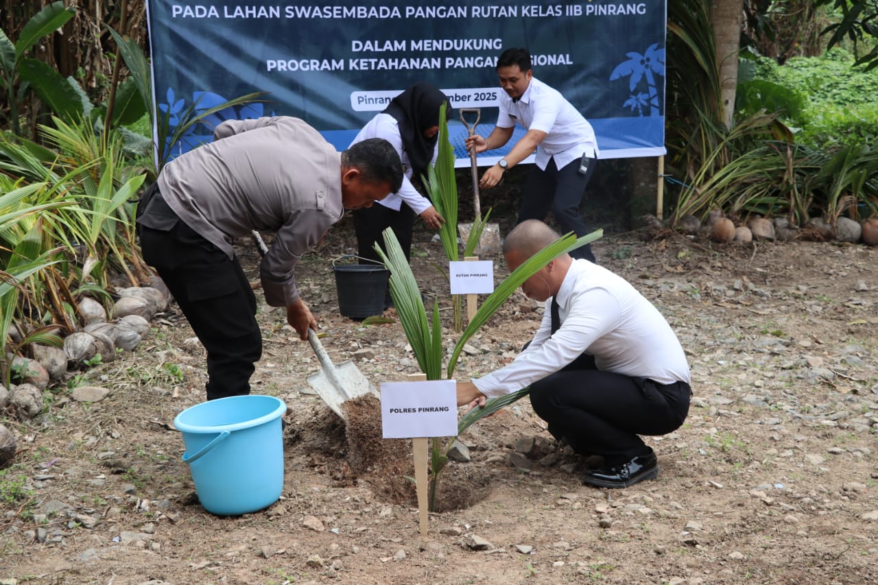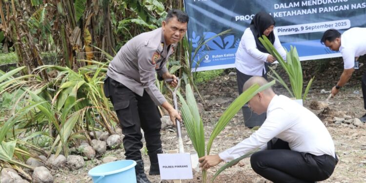 Perisaijurnalis.com, Pinrang – Sebagai bentuk dukungan terhadap program pemerintah dalam mewujudkan ketahanan pangan nasional, Polres Pinrang turut ambil bagian dalam kegiatan penanaman pohon kelapa serentak yang digelar di Rutan Kelas IIB Pinrang, Sulsel. Selasa (9/9/2025).