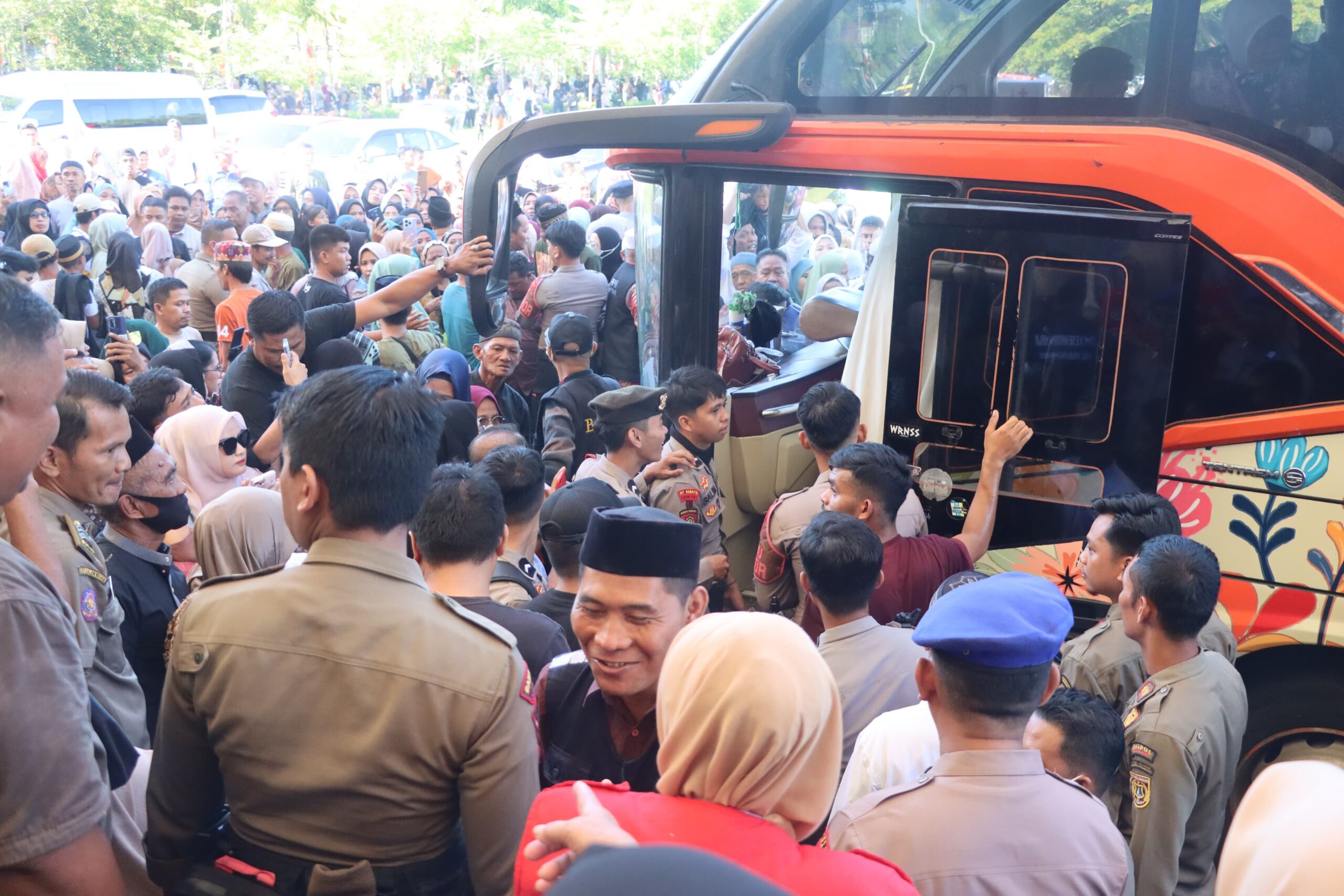 Pengamanan dilaksanakan secara menyeluruh guna memastikan kelancaran, kenyamanan, dan keselamatan seluruh calon jamaah haji yang diberangkatkan menuju Asrama Haji Sudiang, Makassar, sebelum melanjutkan perjalanan ke Tanah Suci.