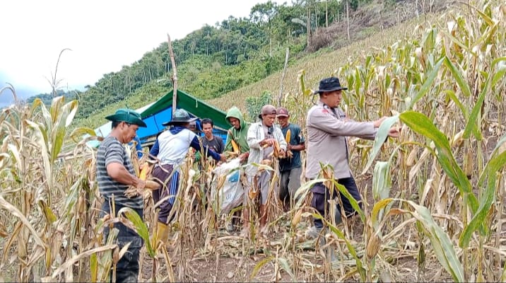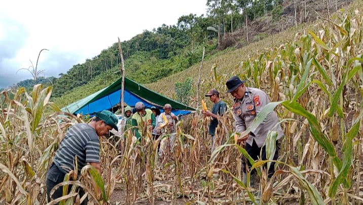 Perisaijurnalis.com, Polman – Kanit Binmas Polsek Matangnga, AIPTU Najamuddin, S.H., menghadiri kegiatan panen jagung bersama Ketua Kelompok Tani Mesakada, Irham, S.Ip., dan para anggota kelompok tani di lahan seluas satu hektar yang terletak di Desa Tapua, Kecamatan Matangnga, Kabupaten Polewali Mandar, Provinsi Sulawesi Barat, Senin (27/10/2025).