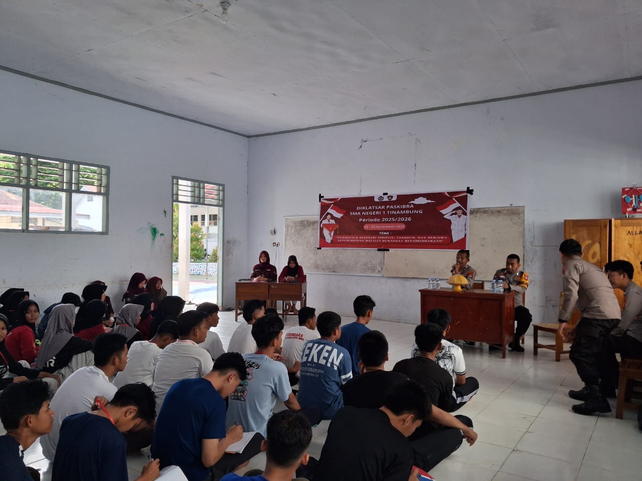 Perisaijurnalis.com, Polman – Kanit Binmas Polsek Tinambung, IPDA Muh. Saleh, menghadiri sekaligus menjadi pemateri dalam kegiatan Pendidikan dan Pelatihan Dasar (Diklatsar) Paskibra di SMAN 1 Tinambung. Kegiatan tersebut berlangsung di ruang kelas SMAN 1 Tinambung, Kecamatan Tinambung, Kabupaten Polewali Mandar, Provinsi Sulawesi Barat, pada Sabtu (22/11/2025).