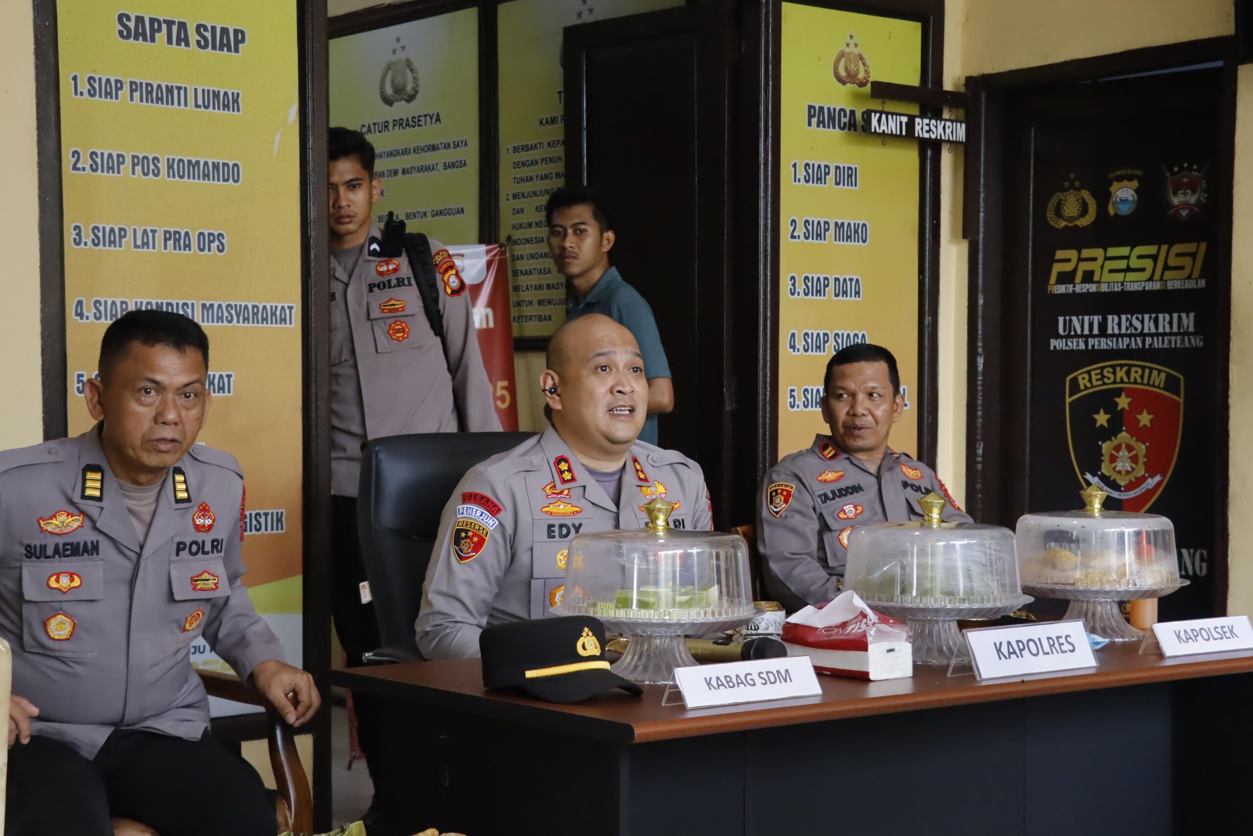 Setibanya di Mapolsek Paleteang pukul 15.10 wita, rombongan disambut Kapolsek IPTU Tajuddin, S.H., beserta jajaran. Pertemuan kemudian berlangsung di aula Polsek, di mana Kapolres kembali menyampaikan arahan serupa, dengan penekanan tambahan pada pentingnya integritas dan kekompakan dalam lingkungan kerja.