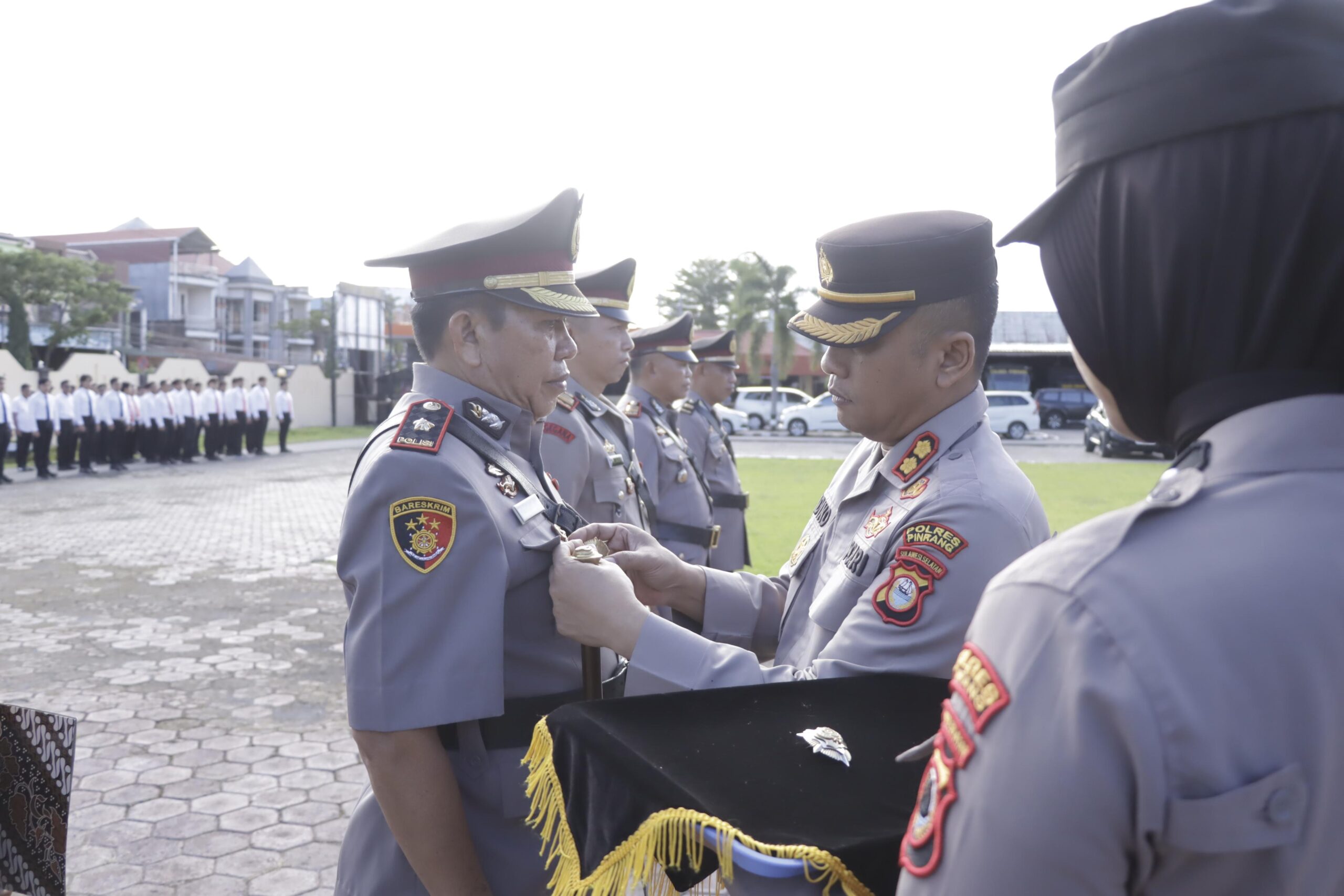 Acara yang digelar di halaman Mapolres Pinrang ini dipimpin langsung oleh Kapolres Pinrang, AKBP Andiko Wicaksono, S.I.K, serta dihadiri oleh pejabat utama Polres Pinrang, Para kapolsek Jajaran, perwira dan bintara Polres Pinrang.