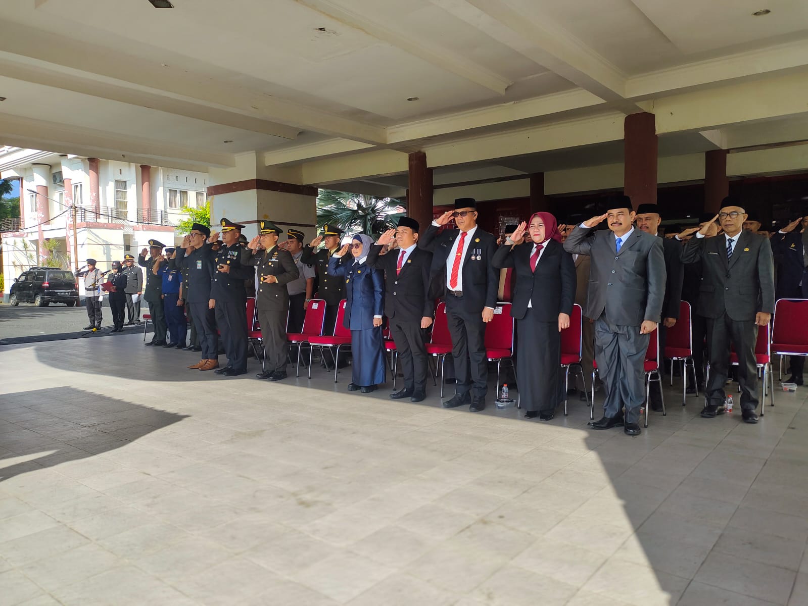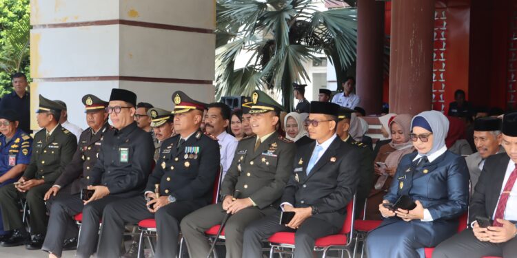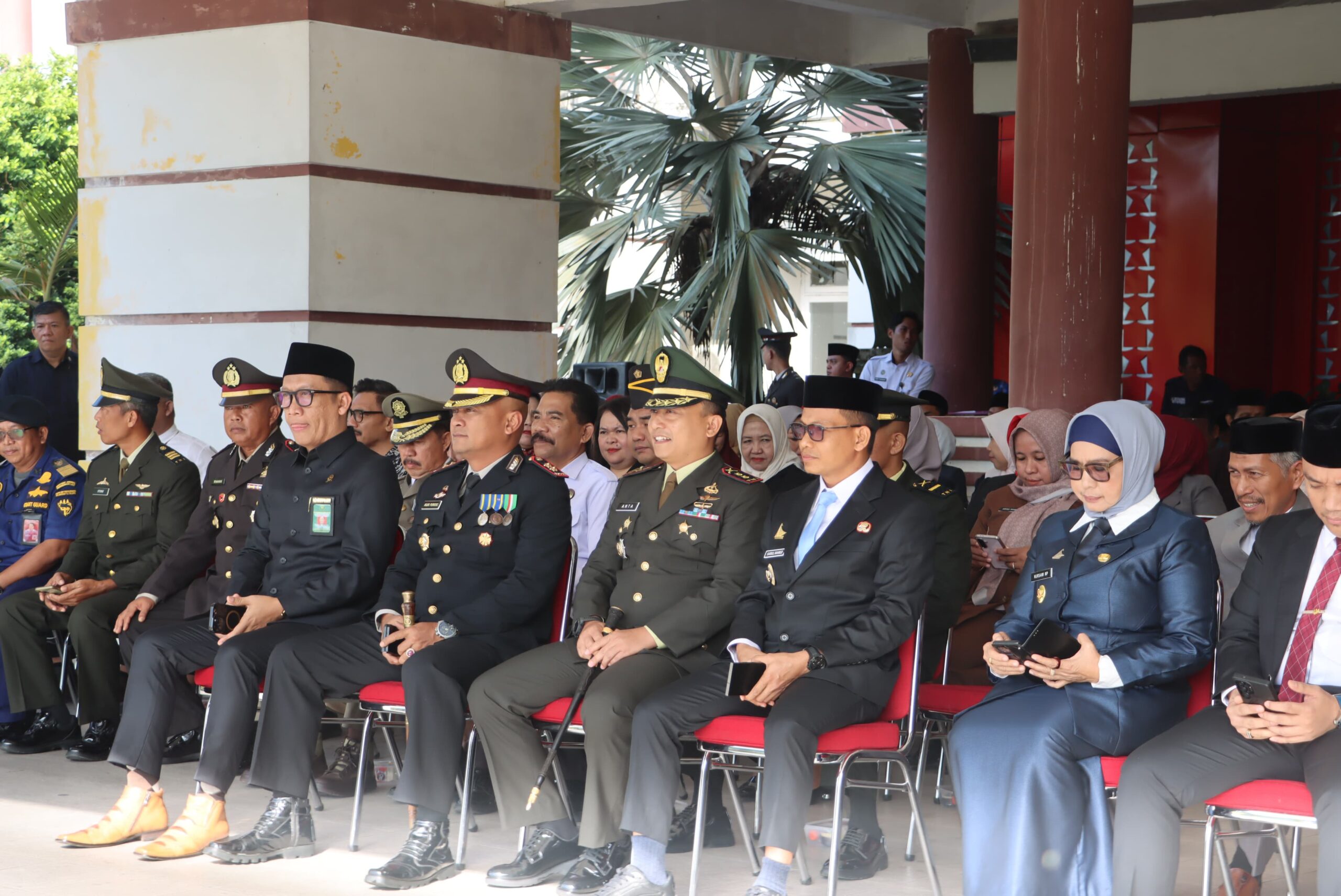 Upacara tersebut dihadiri sejumlah pejabat Forkopimda dan tokoh daerah, antara lain Wakil Bupati Hj. Nursami, M.P., Ketua DPRD Fahri Fadli, S.E., Dandim 1402 Polman Letkol Inf Anta Sihotang, S.Sos., M.Tr.Han., Sekda Nur Said Mustafa, Ketua Pengadilan Negeri Jusdi Purnawan, Kakanmin Vetcab XIV/22 Polmas Kapten CBA Seugeng O’ong, Danki Brimob IPTU Syakhrir, Dan Sub Den Pom LETDA CPM Ali Azis, Danton 3 Kipan B Yonif 721/MKS LETDA INF Selprin Mangopa, Kasi Bimas Islam Kemenag Kab. Polman Abd Haris Nawawi, S.Ag,M.Ag, serta para pejabat instansi vertikal dan OPD Kabupaten Polman.