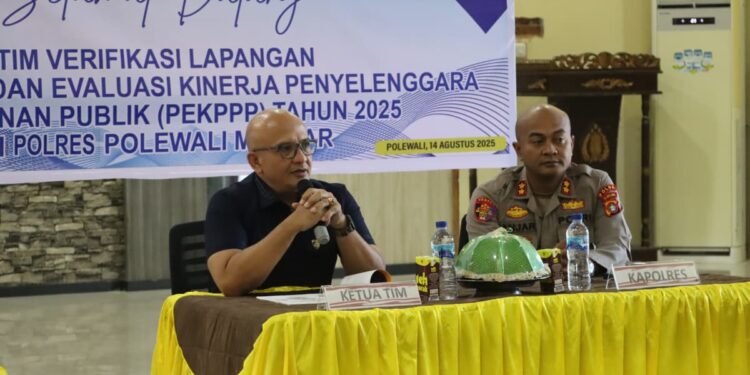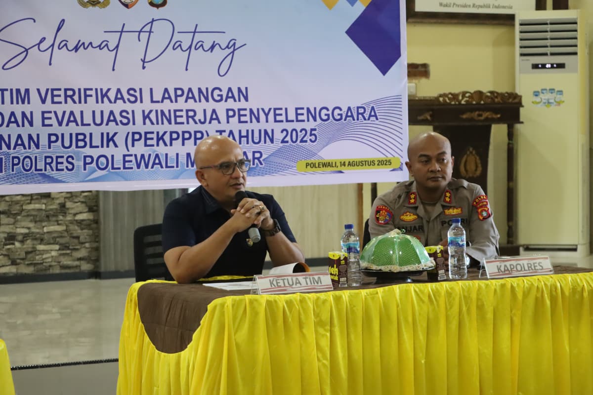 Perisaijurnalis.com, Polman – Kapolres Polewali Mandar (Polman) menerima kunjungan Tim Penilai Internal Mabes Polri dalam rangka Verifikasi Lapangan Penilaian Kinerja Pelayanan Publik (PEKPPP) Tahun 2025, dengan tujuan memastikan kualitas pelayanan publik Polres Polman memenuhi standar yang telah ditetapkan Polri