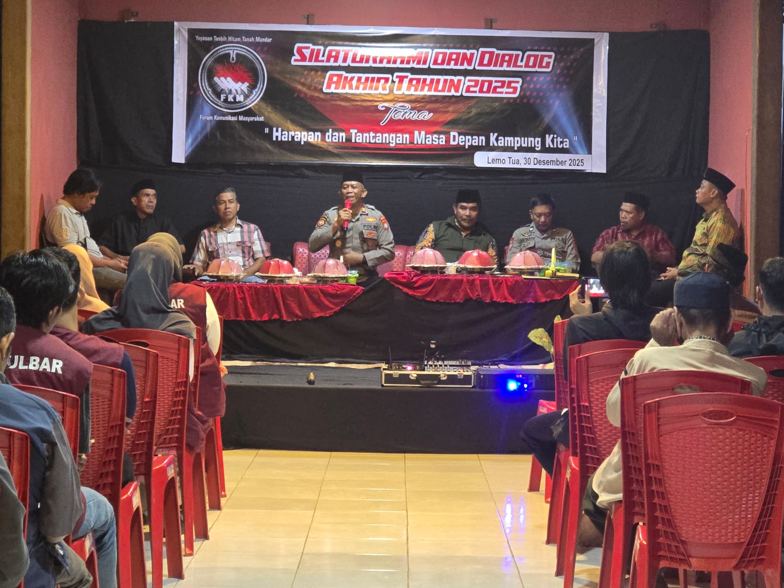 Perisaijurnalis.com, Polman – Kapolsek Binuang IPTU H. Rahman, S.Sos., M.Si. menghadiri kegiatan silaturahmi dan dialog akhir tahun bersama masyarakat Desa Kuajang, Kecamatan Binuang, Kabupaten Polewali Mandar, Provinsi Sulawesi Barat, yang digelar di Baruga Tasbih Hitam (BATAM), Dusun Lemo Tua, Selasa malam (30/12/2024).