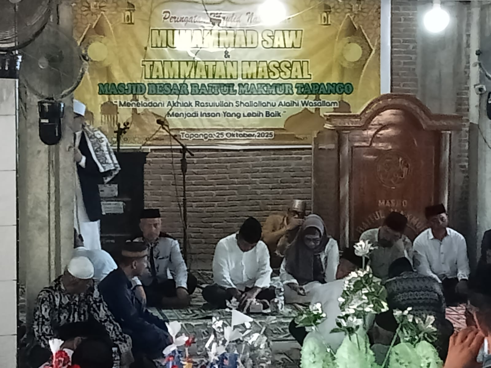 Perisaijurnalis.com, Polman – Kapolsek Tapango, IPDA Muhammad Ishak, S.S.H, menghadiri kegiatan Peringatan Maulid Nabi Besar Muhammad SAW yang digelar di Masjid Besar Baitul Makmur Tapango, Dusun Tapango, Desa Tapango, Kecamatan Tapango, Kabupaten Polewali Mandar, Provinsi Sulawesi Barat, pada Sabtu (25/10/2025).