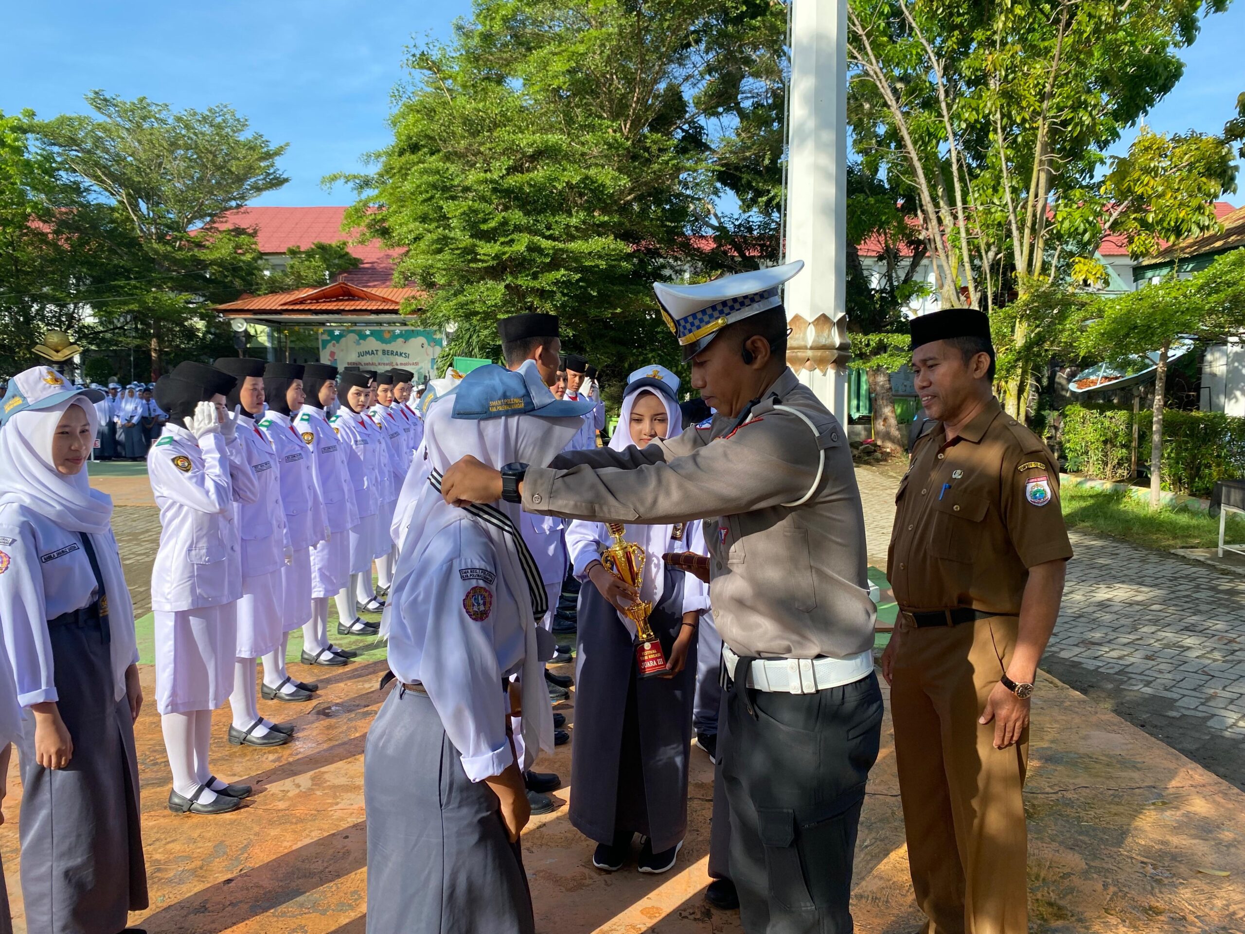 Kegiatan ini dipimpin langsung oleh Kaur Bin Ops Sat Lantas Polres Polman, IPDA Muhammad Ahsan, S.H., M.Si, yang bertindak sebagai Inspektur Upacara Bendera di SMAN 01 Polewali, Jl. H. Andi Depu, Kelurahan Pekkabata, Kecamatan Polewali, Kabupaten Polewali Mandar, Sulawesi Barat.