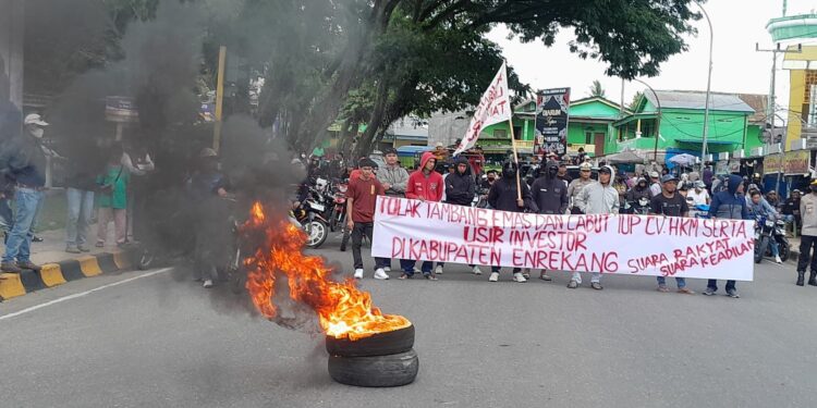 Perisaijurnalis.com, Enrekang – Ribuan warga mengatasnamakan Masyarakat Lingkar Tambang turun aksi Jilid V sebagai bentuk penolakan rencana tambang emas dan meminta Izin Usaha Pertambangan (IUP) CV. Hadap Karya Mandiri di cabut oleh kementerian ESDM yang bertempat di gedung DPRD Kabupaten Enrekang, Sulawesi Selatan, Rabu (24/12/2025).