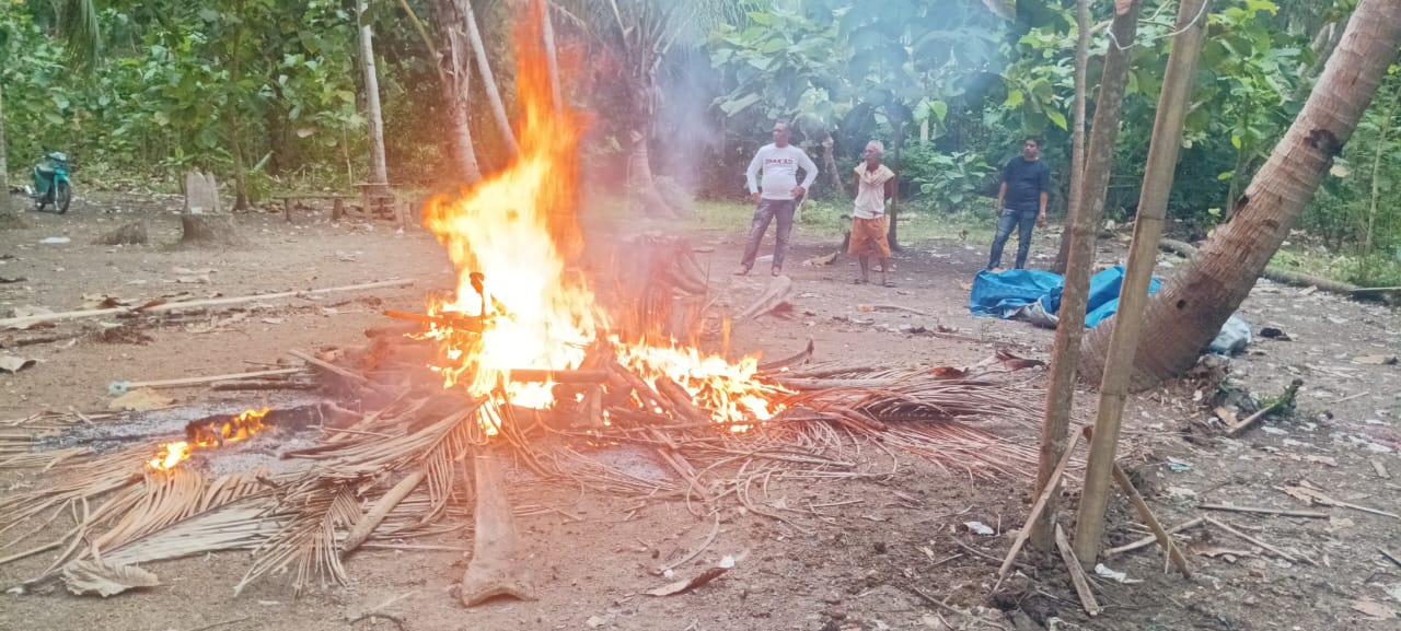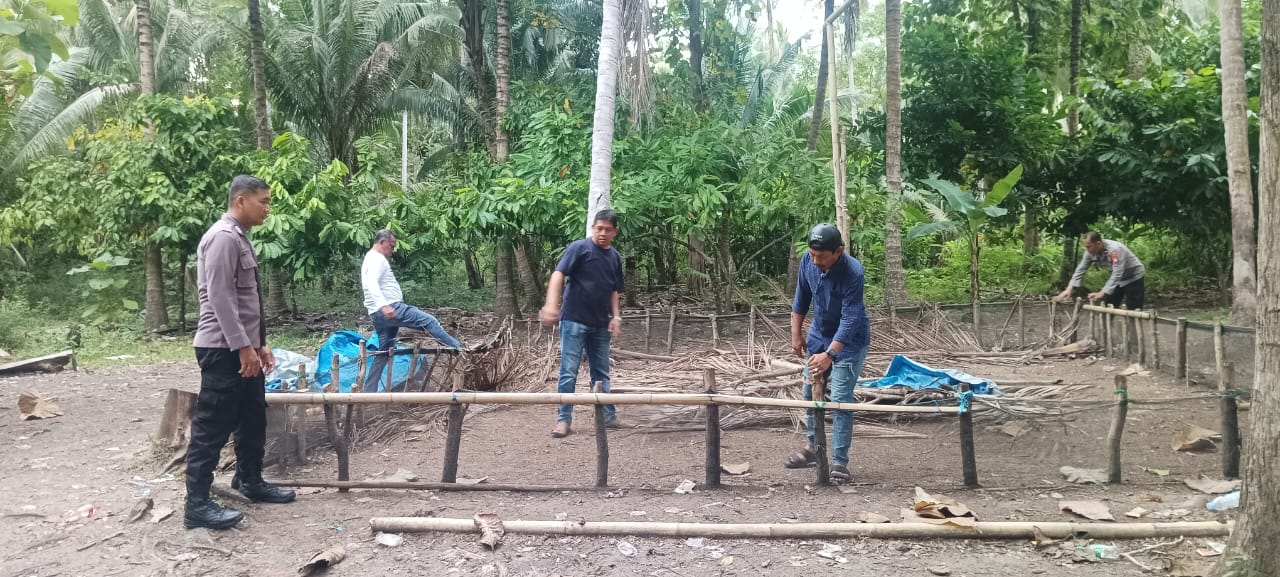 Kemudian personil Polsek Tinambung melakukan pemusnahan arena sabung ayam dengan cara membakar sarana tersebut, agar tidak di gunakan lagi sebagai tempat bermain judi sabung ayam saat melakukan pemusnahan sarana atau tempat bermain judi sabung ayam.