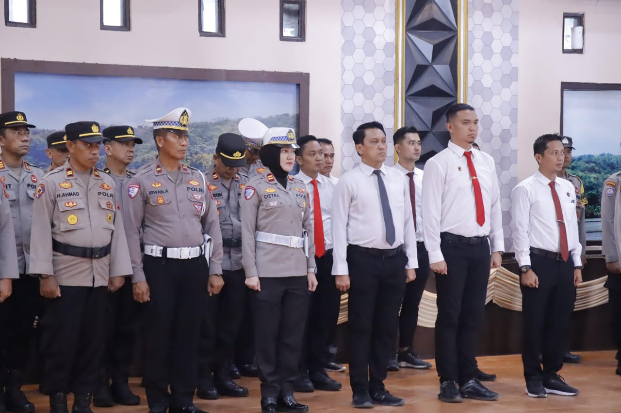 Upacara tersebut dipimpin langsung oleh Kapolres Pinrang, AKBP Edy Sabhara Mangga Barani, S.I.K., dan dihadiri oleh Waka Polres Kompol Muhammad Yusuf Badu, S.H., para Kabag, Kasat, Kasi, serta Kapolsek jajaran. Selain itu, turut hadir para perwira, bintara, PNS Polres Pinrang, serta Ketua Bhayangkari dan pengurus Bhayangkari Cabang Pinrang.