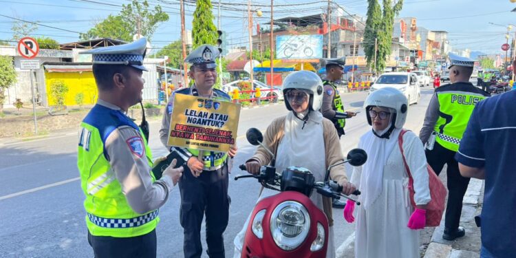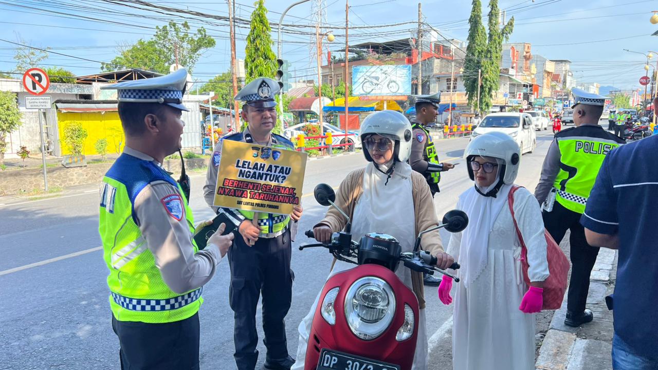 Dalam kegiatan tersebut, Petugas mengingatkan pengemudi kendaraan roda empat dan lebih agar selalu menggunakan sabuk keselamatan, sementara pengendara roda dua dihimbau untuk senantiasa menggunakan helm berstandar SNI serta mengunci helm dengan benar demi keselamatan saat berkendara.