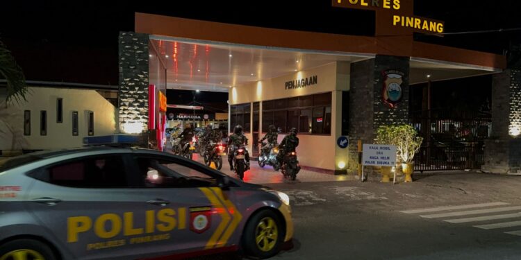Perisaijurnalis.com, Pinrang – Sinergitas TNI dan Polri kembali diperlihatkan melalui patroli skala besar yang digelar di wilayah hukum Polres Pinrang, Kamis malam (4/9/2025). Kegiatan ini dipimpin Kabag Ops Polres Pinrang, AKP Hasan Basri yang didampingi Kasat Samapta Polres Pinrang AKP Kisman, S.H serta pejabat utama.