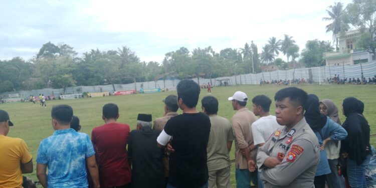 Perisaijurnalis.com, Polman – Personel Polsek Campalagian melaksanakan pemantauan, monitoring, sekaligus pengamanan jalannya pertandingan semifinal Turnamen Sepak Bola Tomadio Cup IX Tahun 2025 di Lapangan Sepak Bola Gasrat, Desa Bonde, Kecamatan Campalagian, Kabupaten Polewali Mandar, Provinsi Sulawesi Barat, yang digelar pada Selasa (16/9/2025) sore,