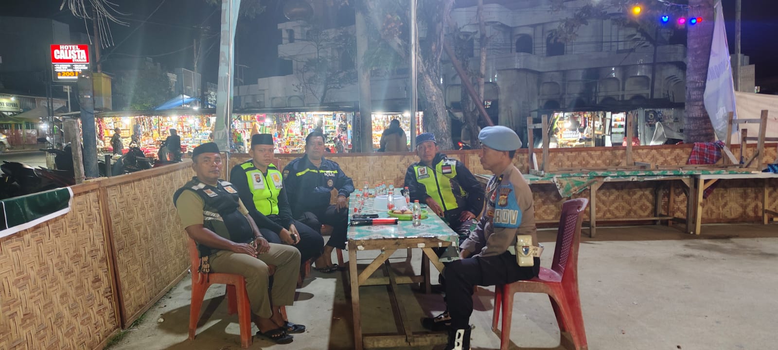 Patroli keliling juga dilakukan secara rutin untuk memastikan keamanan tetap terjaga selama kegiatan ibadah.