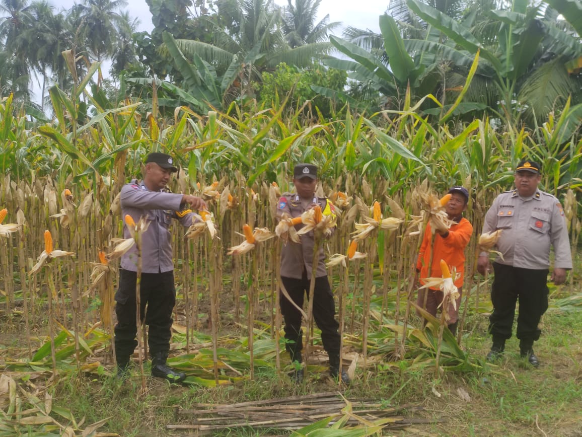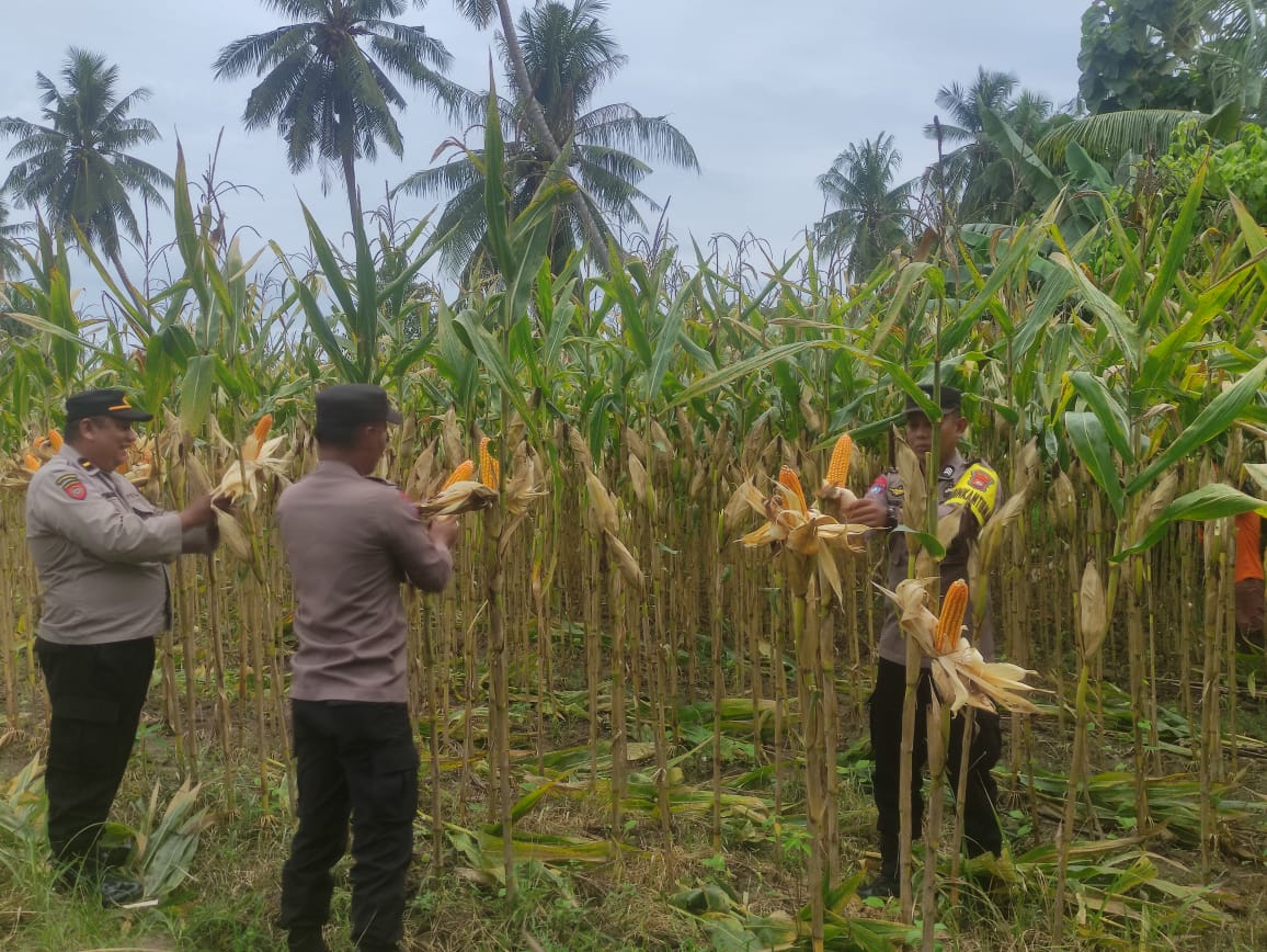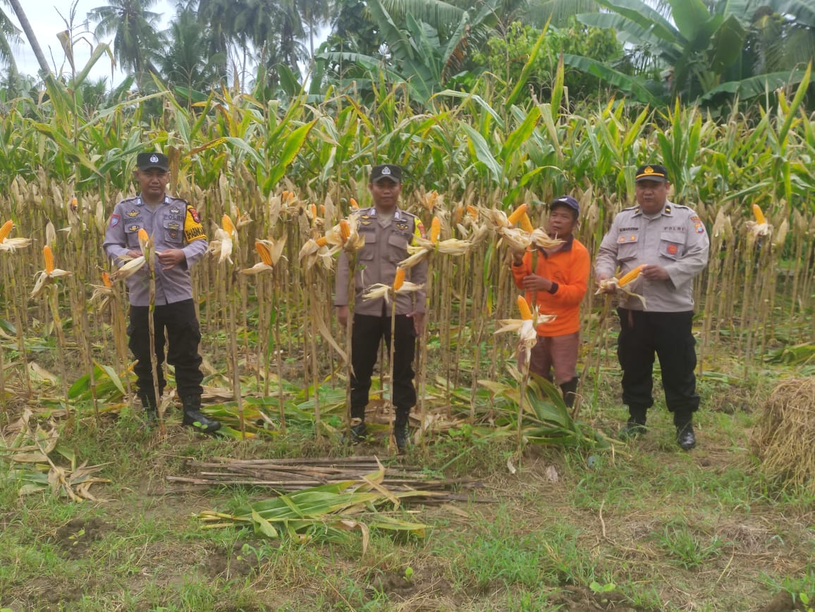Dalam kegiatan ini, personel Polsek melakukan pemantauan langsung proses panen serta memberikan edukasi kepada petani agar hasil panen jagung dapat disalurkan melalui Perum Bulog, guna mendukung stabilitas pangan dan harga di wilayah setempat.