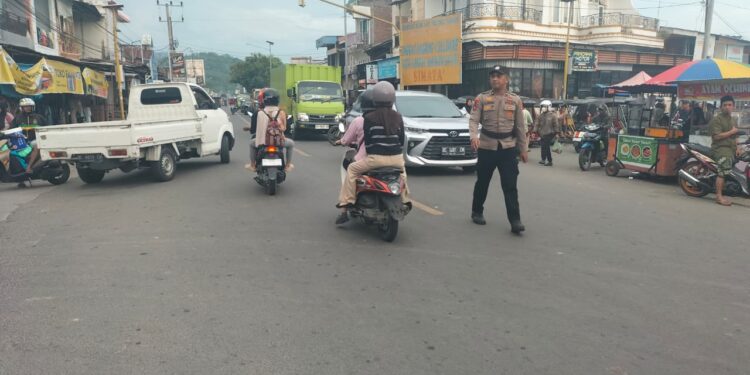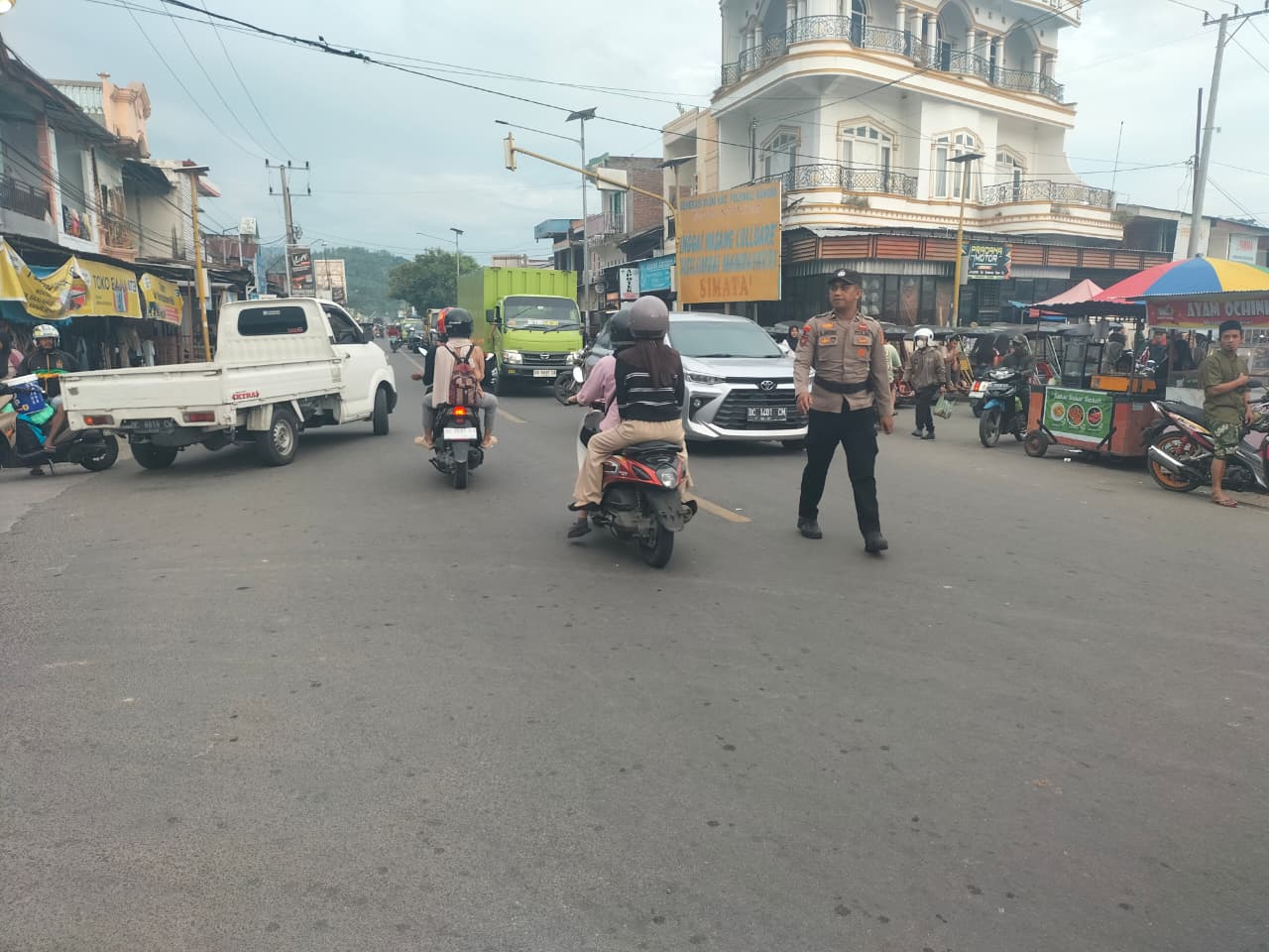 Di lokasi, personil tidak hanya mengatur arus lalu lintas yang padat, tetapi juga memberikan himbauan kepada masyarakat terkait keamanan dan ketertiban.