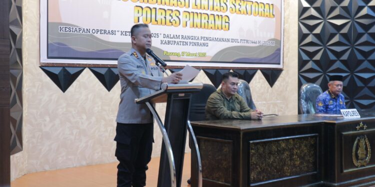 Perisaijurnalis.com, Pinrang – Menjelang perayaan Idul Fitri 1446 H, Polres Pinrang menggelar Rapat Koordinasi Lintas Sektoral dalam rangka kesiapan Operasi Ketupat – 2025. Kegiatan yang berlangsung di Aula Wicaksana Laghawa Polres Pinrang, Senin (17/03/2025).