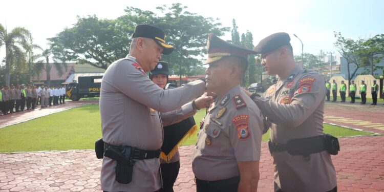 Dalam upacara tersebut, personel yang menerima kenaikan pangkat pengabdian adalah AKBP Abdul Razak, S.H., S.Sos., M.M.. Prosesi berlangsung khidmat, diawali dengan laporan perwira upacara, penghormatan pasukan, hingga penanggalan dan penyematan tanda pangkat sebagai simbol penghargaan atas dedikasi dan loyalitas yang telah diberikan selama bertugas di institusi Polri.