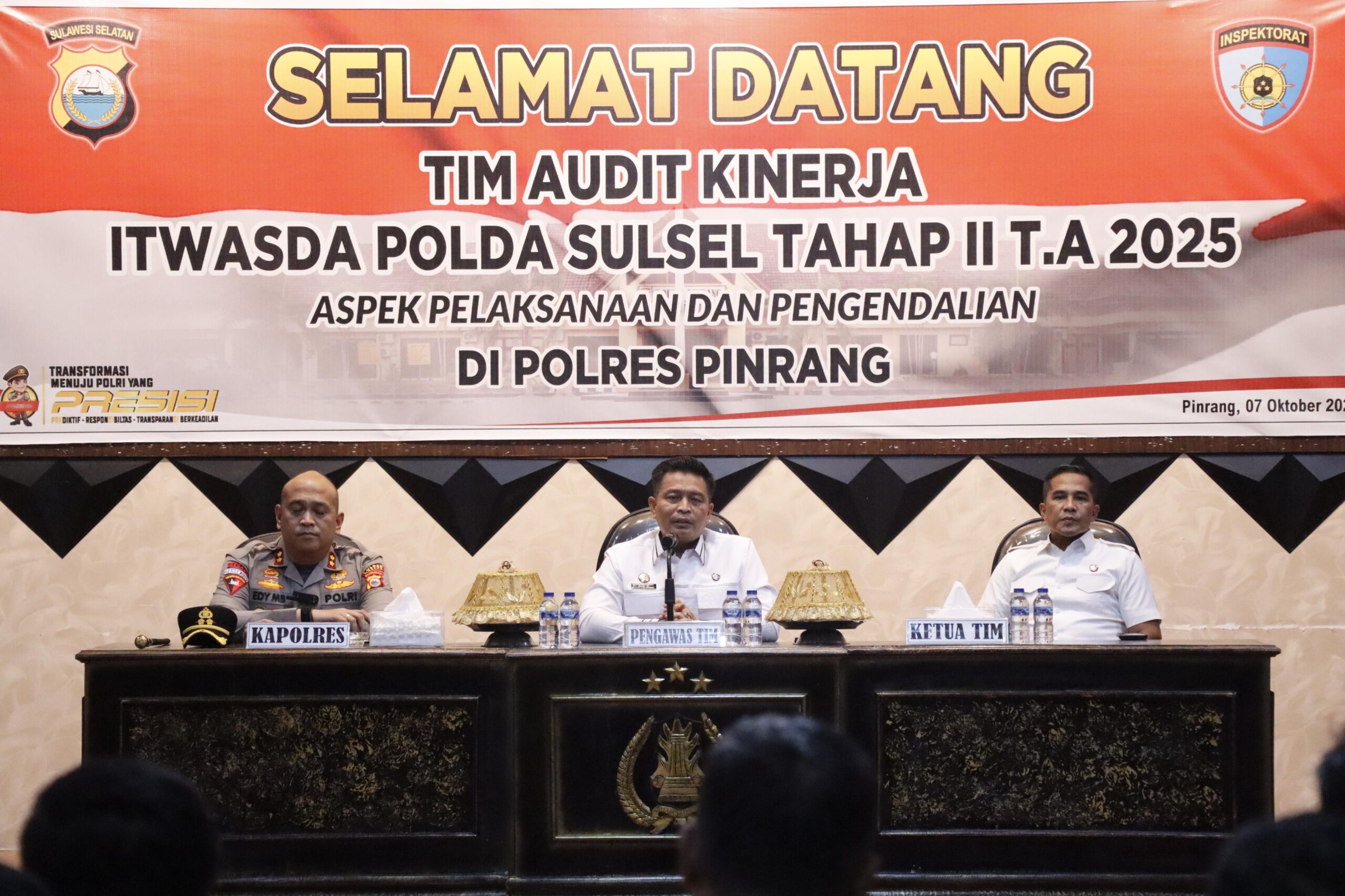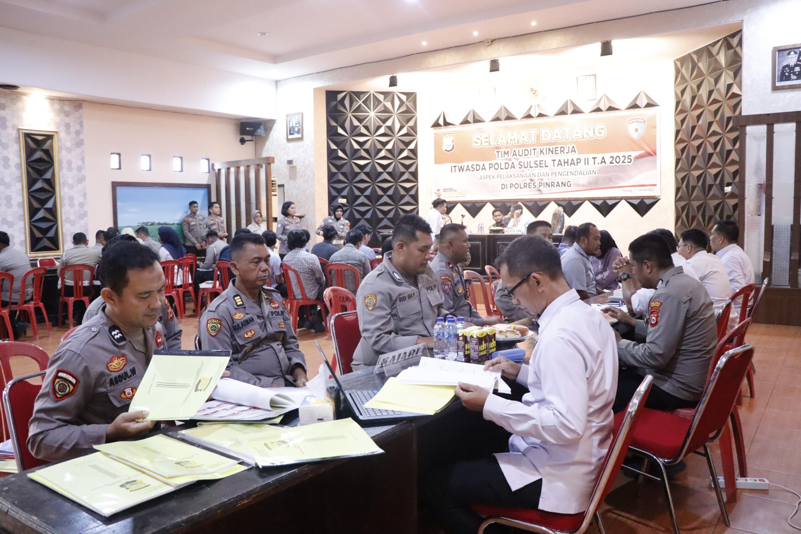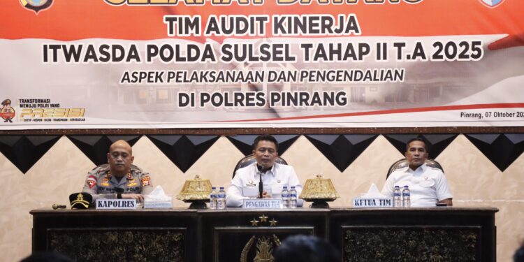 Perisaijurnalis.com, Pinrang – Tim Itwasda Polda Sulsel melaksanakan audit kinerja tahap II Tahun Anggaran 2025 dengan fokus pada aspek pelaksanaan dan pengendalian di Polres Pinrang. Kegiatan tersebut berlangsung pada Selasa (07/10/2025) sekitar pukul 14.30 Wita bertempat di Aula Wicaksana Laghawa Polres Pinrang, Jl. Bintang, Kelurahan Maccorawalie, Kecamatan Watang Sawitto, Kabupaten Pinrang.