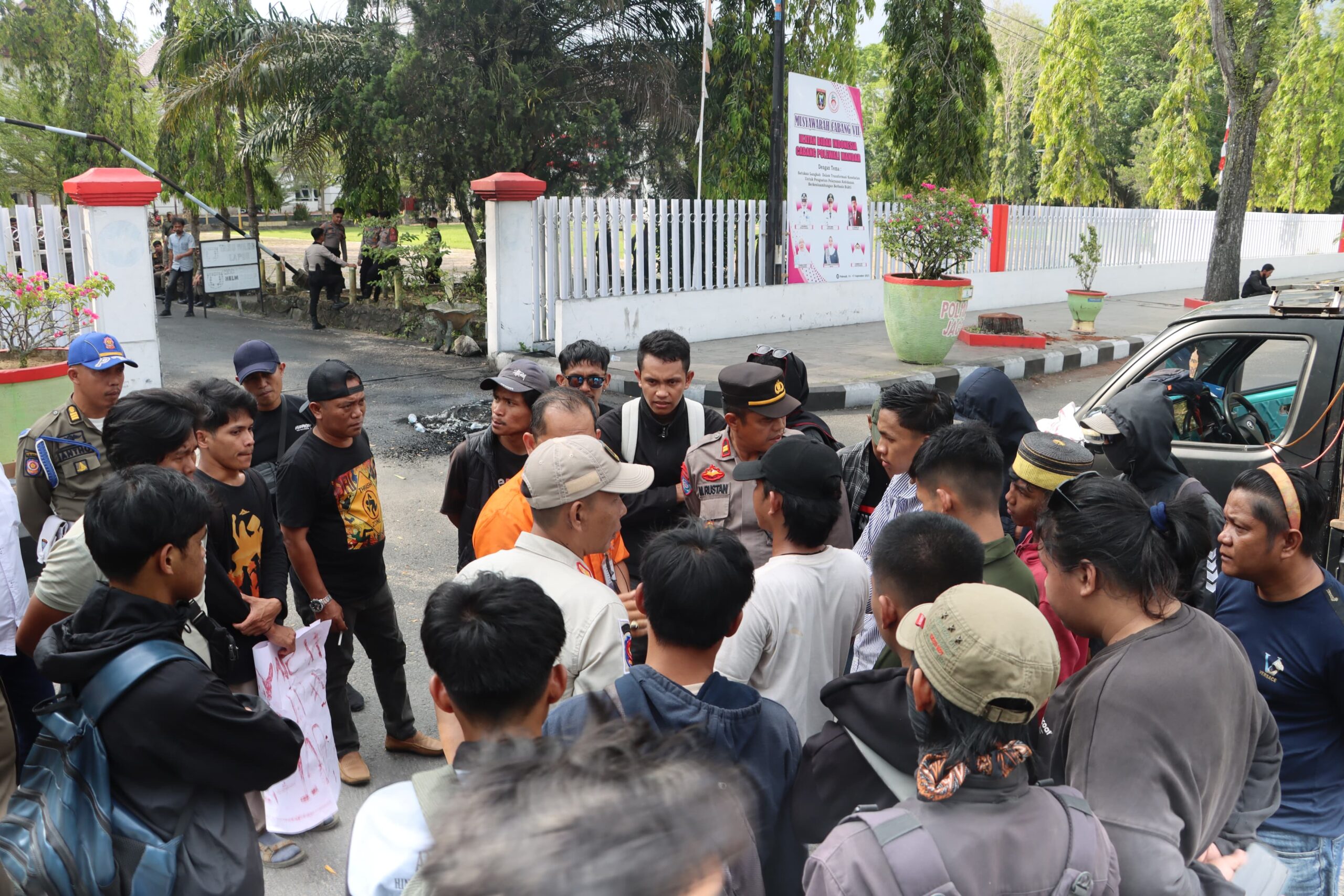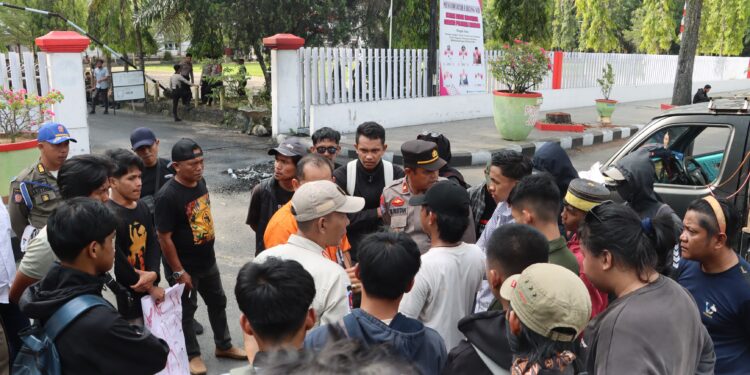 Perisaijurnalis.com, Polman – Kepolisian Resor (Polres) Polewali Mandar melaksanakan pengamanan aksi unjuk rasa yang digelar oleh Aliansi Masyarakat Kecamatan Allu di Kantor Pemerintah Daerah Kabupaten Polewali Mandar, Provinsi Sulawesi Barat, Kamis (25/09/2025).