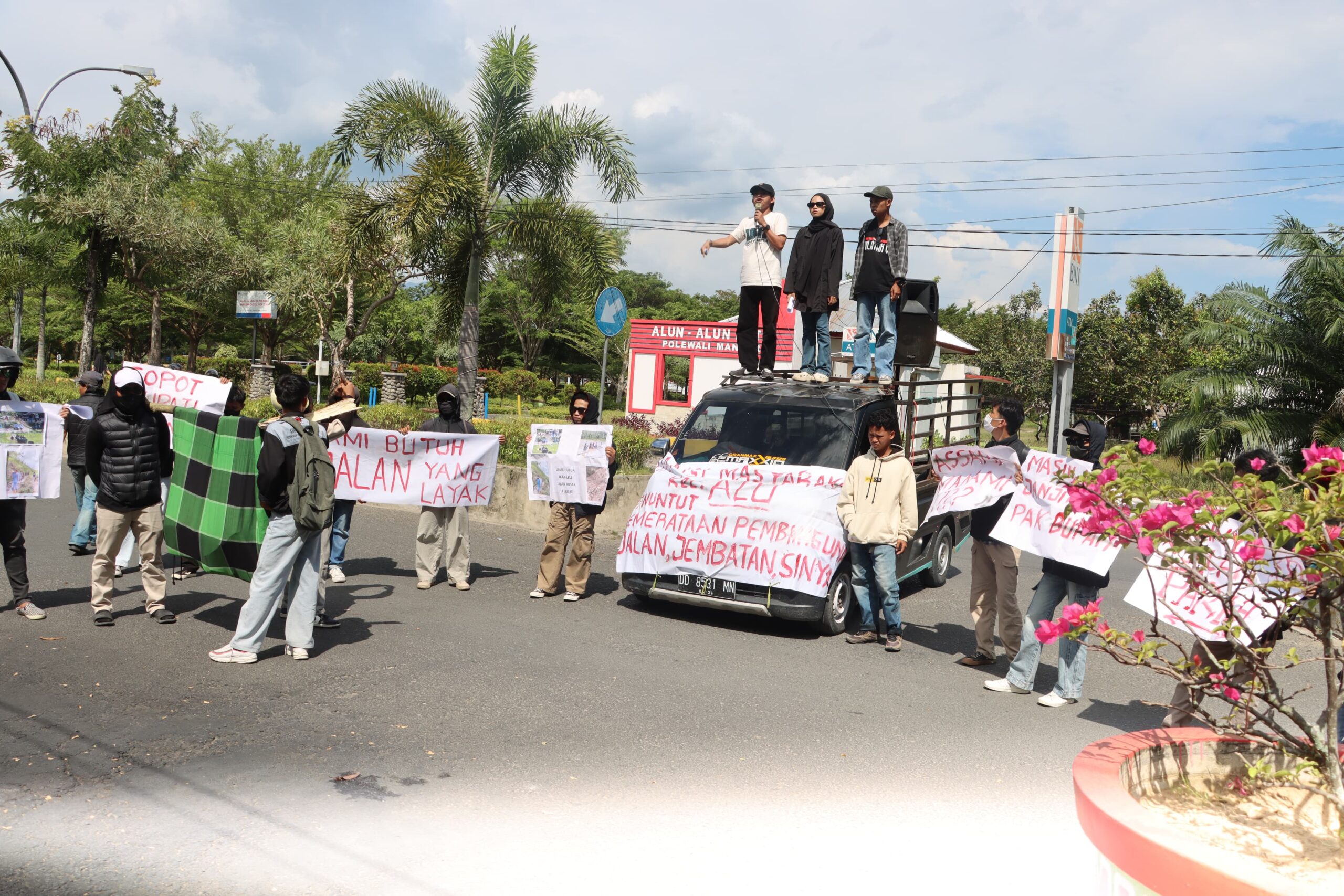 Massa aksi mulai berkumpul sekitar pukul 12.55 Wita di Pelataran Sport Center Polewali, kemudian bergerak menuju Kantor Pemda Polman. Setibanya di lokasi, massa bergantian menyampaikan orasi terkait persoalan infrastruktur di Kecamatan Allu, disertai aksi pembakaran ban bekas.